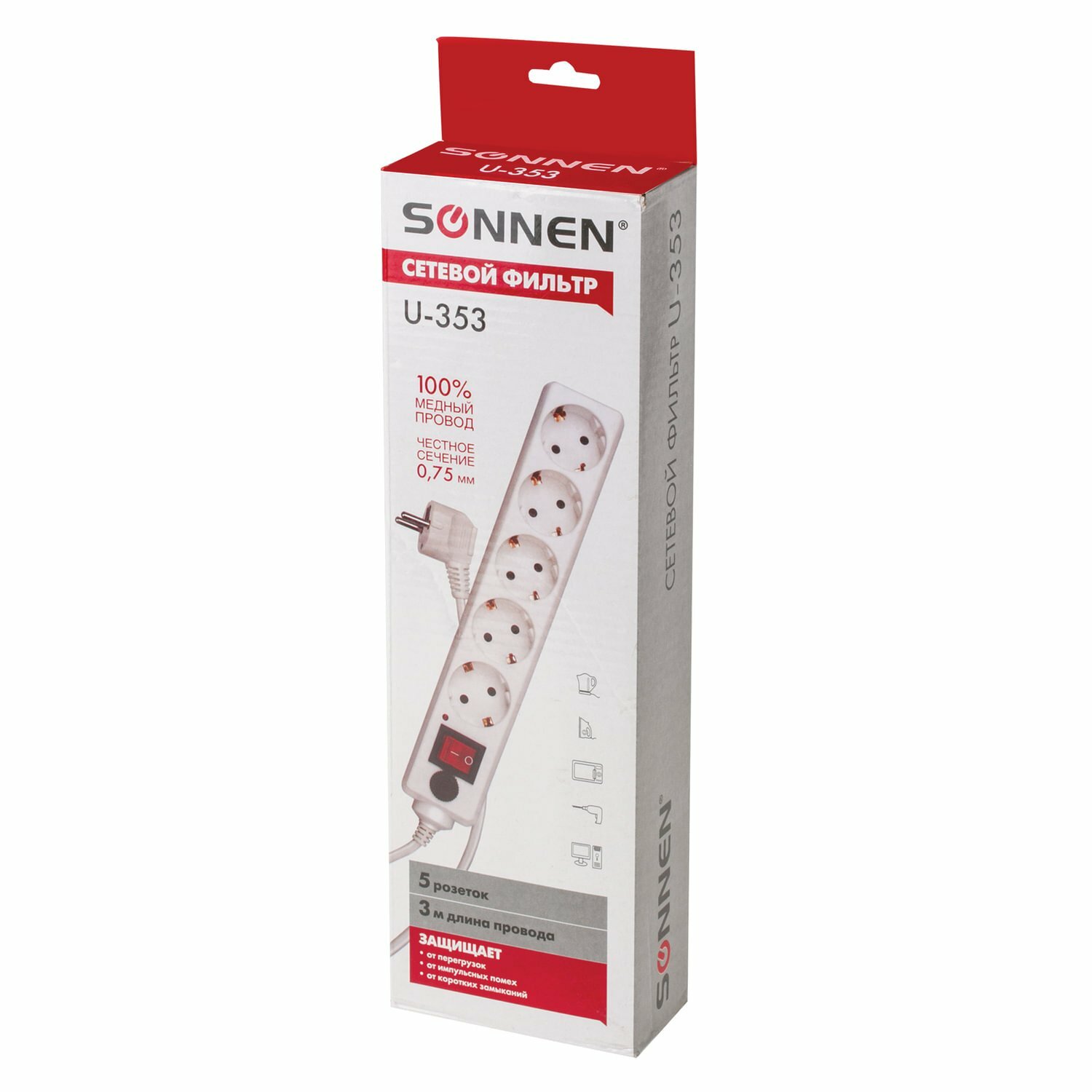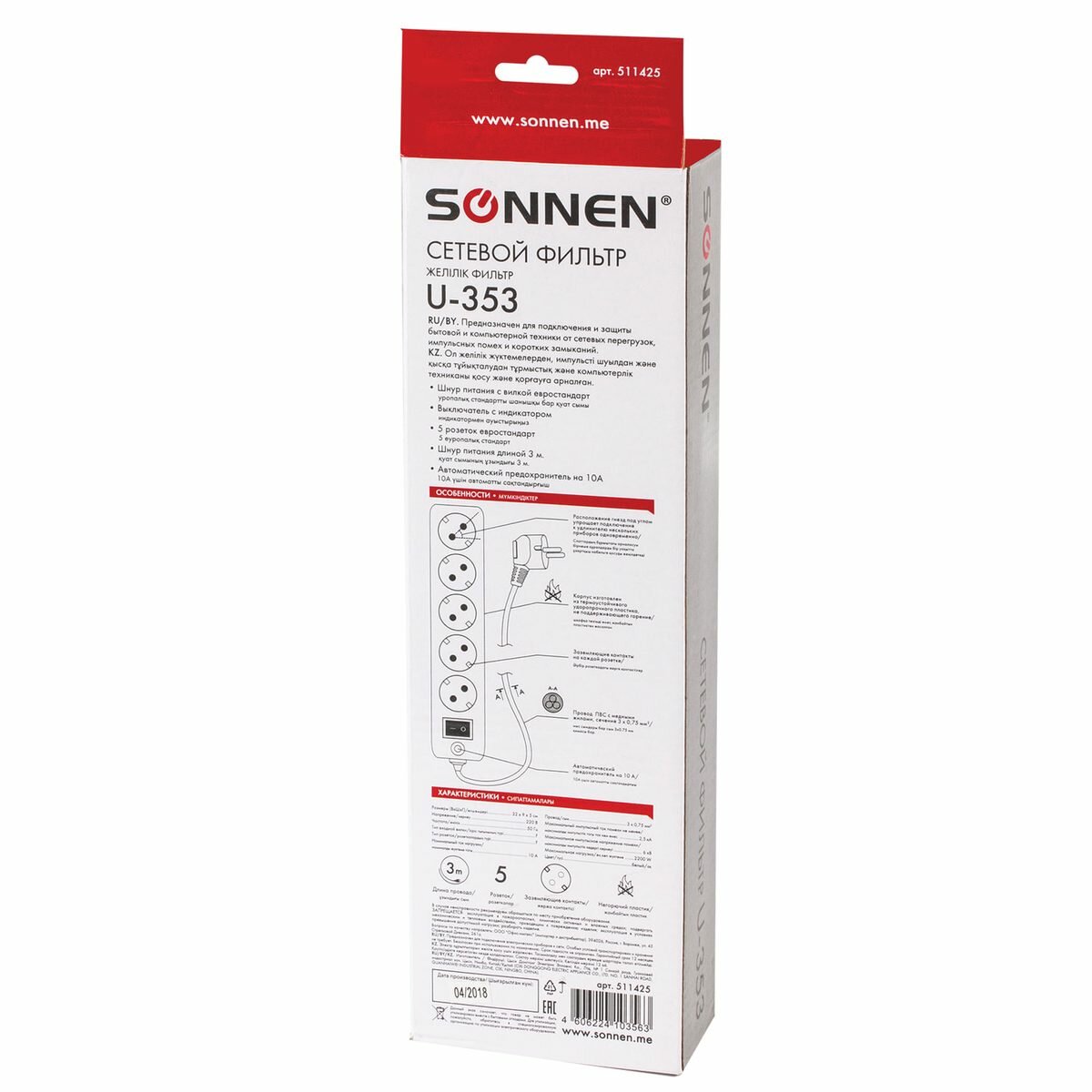 Сетевой фильтр SONNEN U-353 - простой, удобный и экономный вариант защиты электроприборов от негативных последствий перепадов напряжения. Корпус выполнен из высококачественного негорючего пластика.