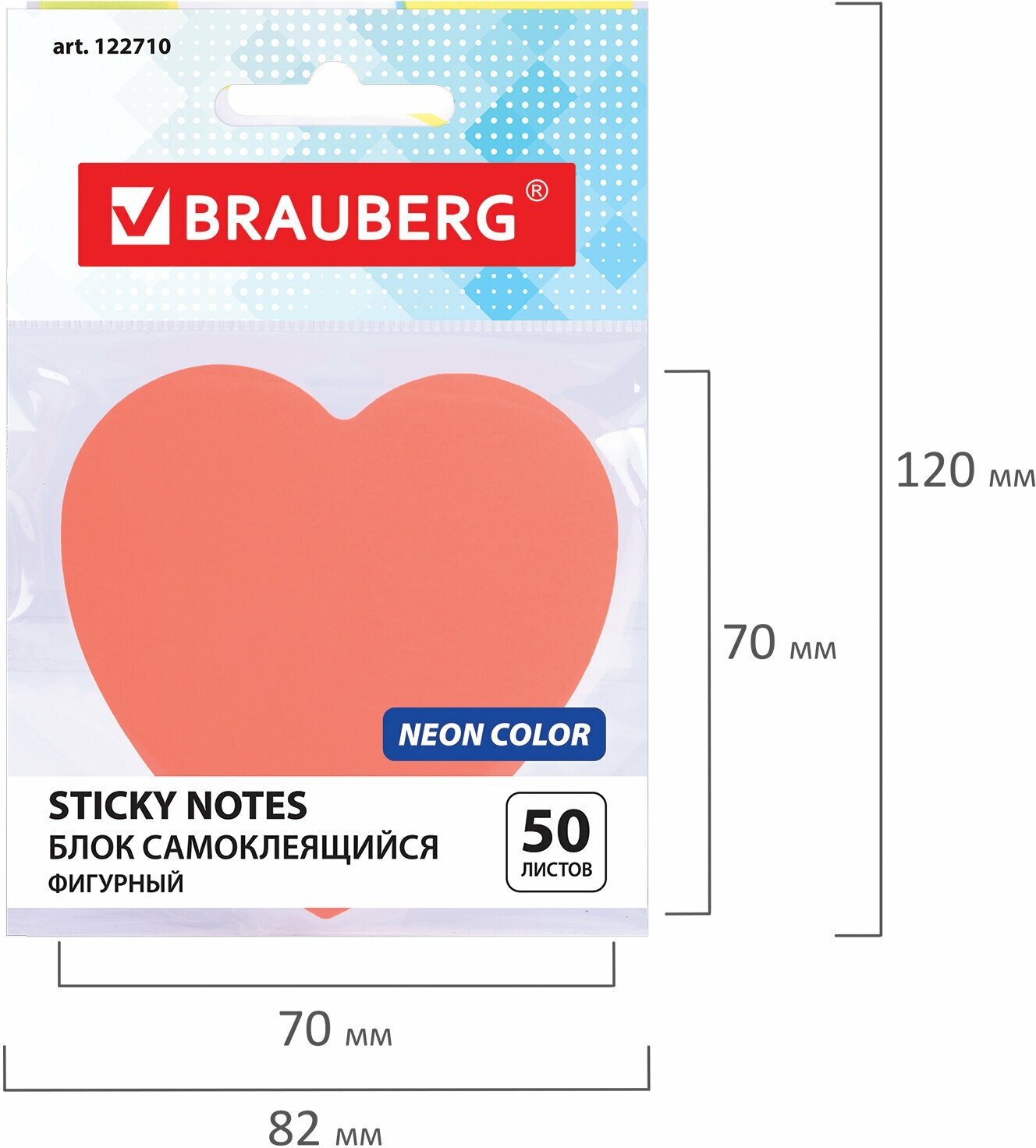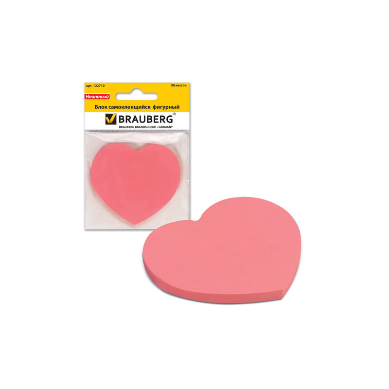 Блок самоклеящийся BRAUBERG 50 листов 70х70 мм розовый Сердце