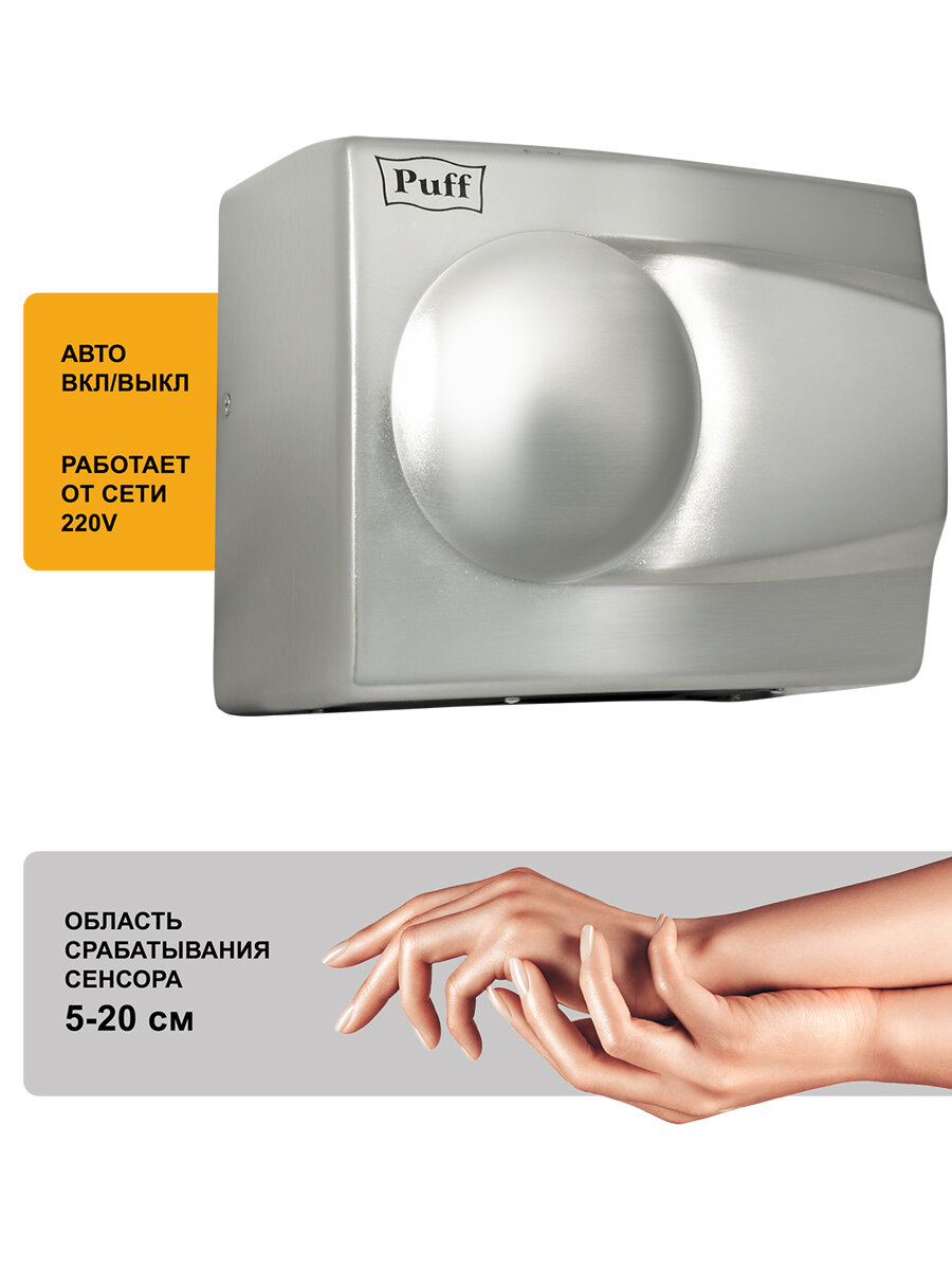 - Сталь крепкая, сушит быстро и мощно, сенсор надёжный, лёгкий монтаж с крепежом в комплекте.