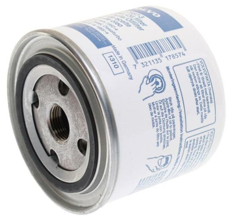 Фильтр масляный VOLVO для тонкой очистки при работе двигателя постоянно удаляет из системы смазки абразивные частицы, способные вызывать повышенный износ трущихся деталей.