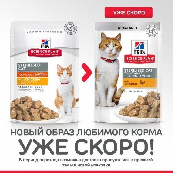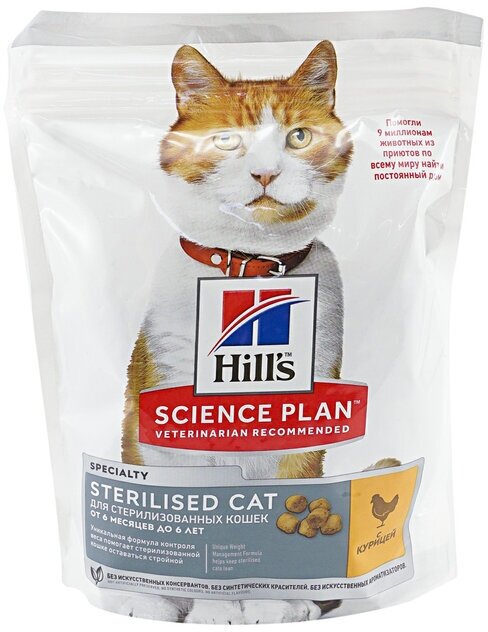 Стерилизованные кошки или кастрированные коты, склонны к набору избыточного веса, поскольку у них увеличивается аппетит и снижается активность. Также у них увеличивается вероятность возникновения проблем с функциями почек и мочевого пузыря. Сухой корм для молодых стерилизованных кошек и кастрированных котов, с курицей HILL'S SCIENCE PLAN Sterilised Cat содержит уникальную формулу контроля веса, поддерживающую идеальный вес, а также сбалансированный набор минералов для поддержания здоровья функций почек и мочевого пузыря. Мы с гордостью представляем вам новый образ любимого корма Hill's Science Plan. В некоторых из наших кормов также изменились названия, форма гранул и формулы.