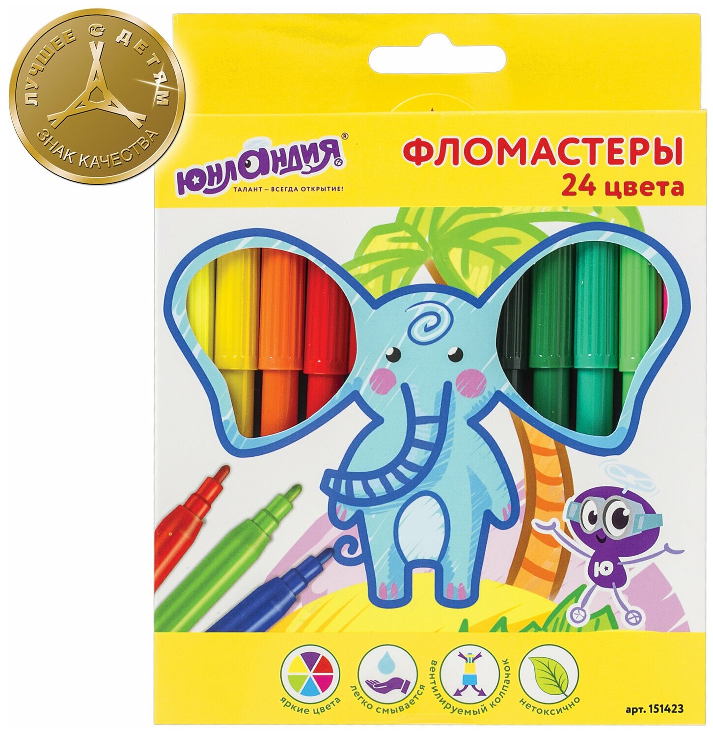 Фломастеры ЮНЛАНДИЯ 24 цвета "ЭКЗОТИКА" вентилируемый колпачок картон 151423
