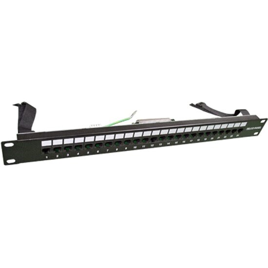 19" неэкранированная коммутационная панель с 24 портами RJ-45 и разъемом Telco (50 контактов «мама»). Панель предназначена для быстрой и удобной разводки портов активного оборудования для протокола 10/100-Base T.
