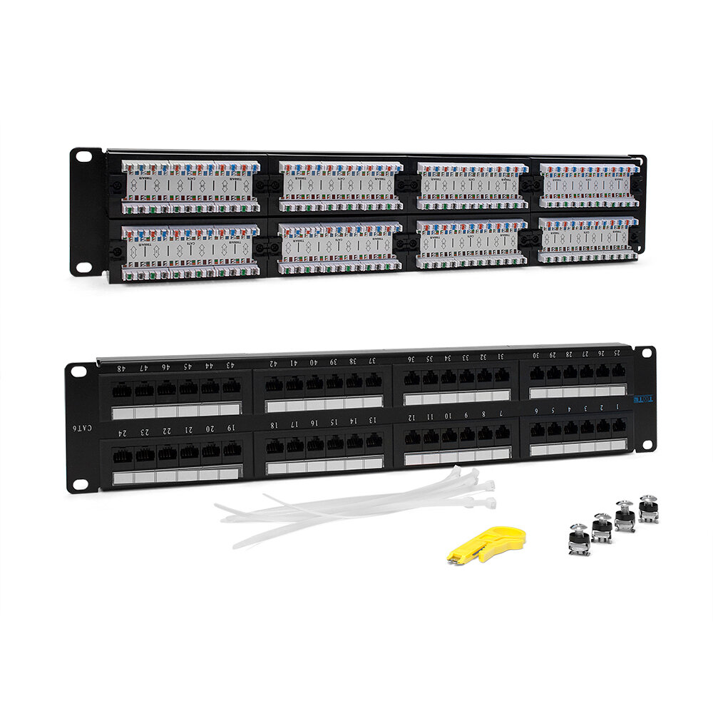 Назначение Коммутационные панели (патч-панели) - это место консолидации телекоммуникационных кабельных линий. При помощи патч-панелей осуществляется заделка кабелей в модули типа RJ45 (порт), а также коммутация линий связи и передачи данных посредством коммутационных шнуров. Коммутационные панели являются удобным средством для подачи пользователям различного сервиса от активного оборудования.Дополнительная информация Особенности конструкции: современный дизайн и простота установки; соответствие требованиям категории 6; цветовая раскладка проводников по T568B и T568A; площадки для дополнительной маркировки под бумажные вкладыши;объединение портов по 6 в группу; производятся в высоте 2U; c лицевой стороны цифровая маркировка портов; с обратной стороны цветовая и цифровая маркировка контактов; Dual IDC блоки с цветовой раскладкой