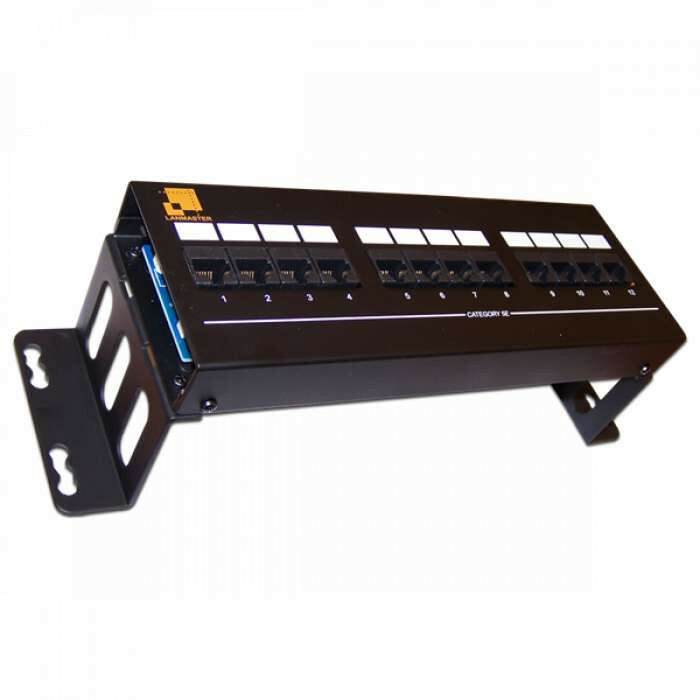 Патч-панель настенная 12 портов RJ-45 категория 5e UTP горизонтальная с фронтальным можтажом L LANMASTER LAN-PPF12U5E/W