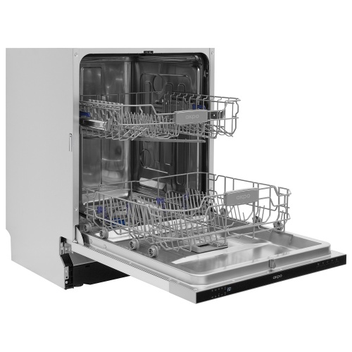 Прибор имеет 2 корзины для посуды и лоток для столовых приборов. Работает на 6 режимах, может мыть стекло и сильнозагрязненную посуду. ПММ снабжена системой Autoopen. По завершению цикла мойки дверца автоматически приоткрывается на 10 см, что способствует вентиляции внутри камеры и ускоряет конденсационную сушку.