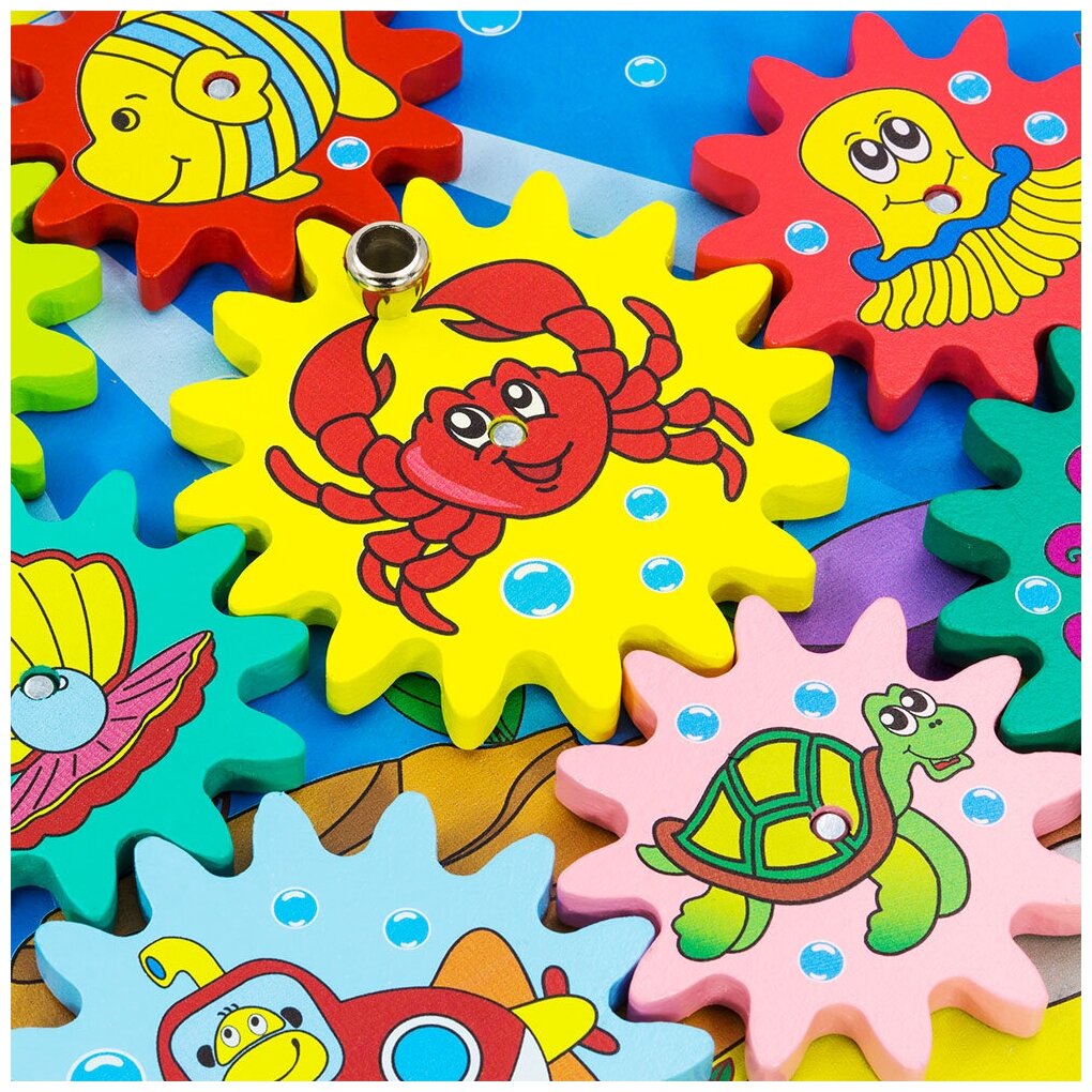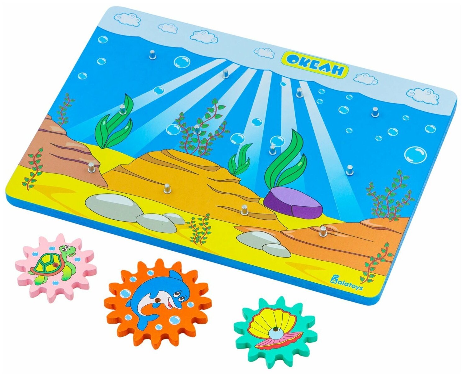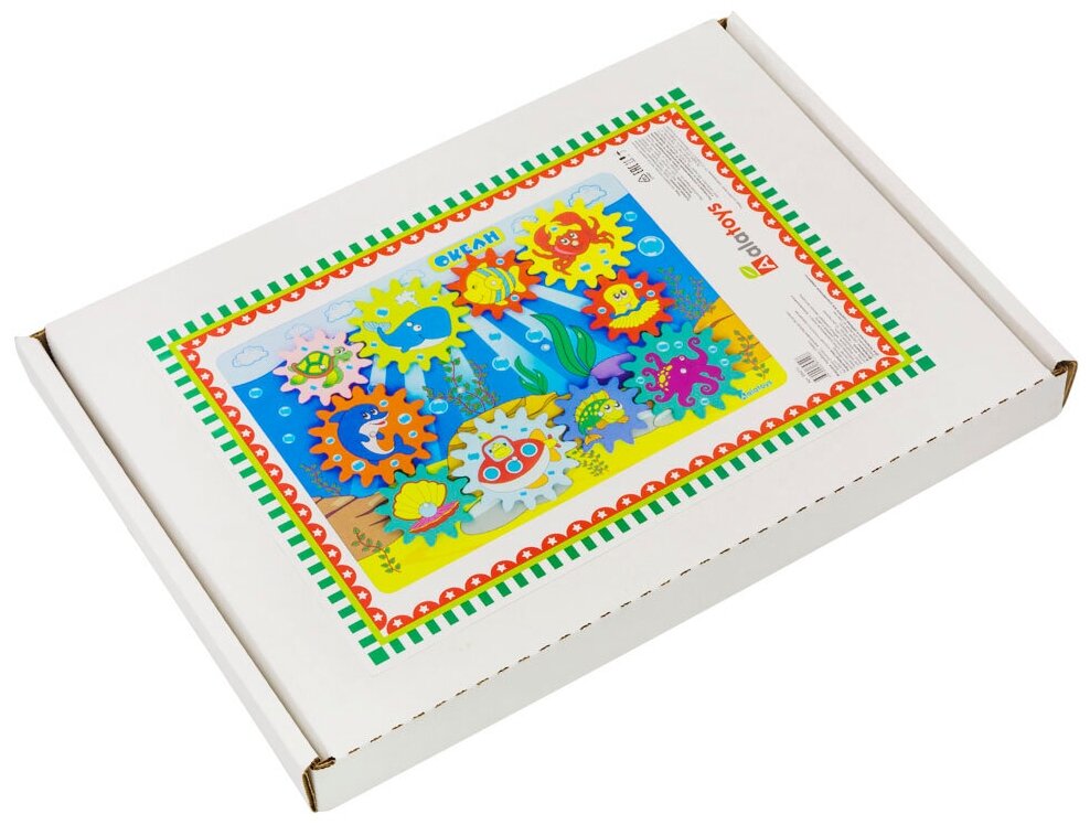 Бизиборд - это игровая доска, созданная по методике Монтессори, для развития основных навыков ребёнка: мелкой моторики, воображения, логики и речи. Бизиборд "Океан" от Алатойс предлагает вниманию ребёнка игровое поле с ярким принтом и 10 шестерёнок с изображениями на тему "Океан". Ребёнок может экспериментировать, устанавливать шестерёнки в разной последовательности - они всегда будут вращаться