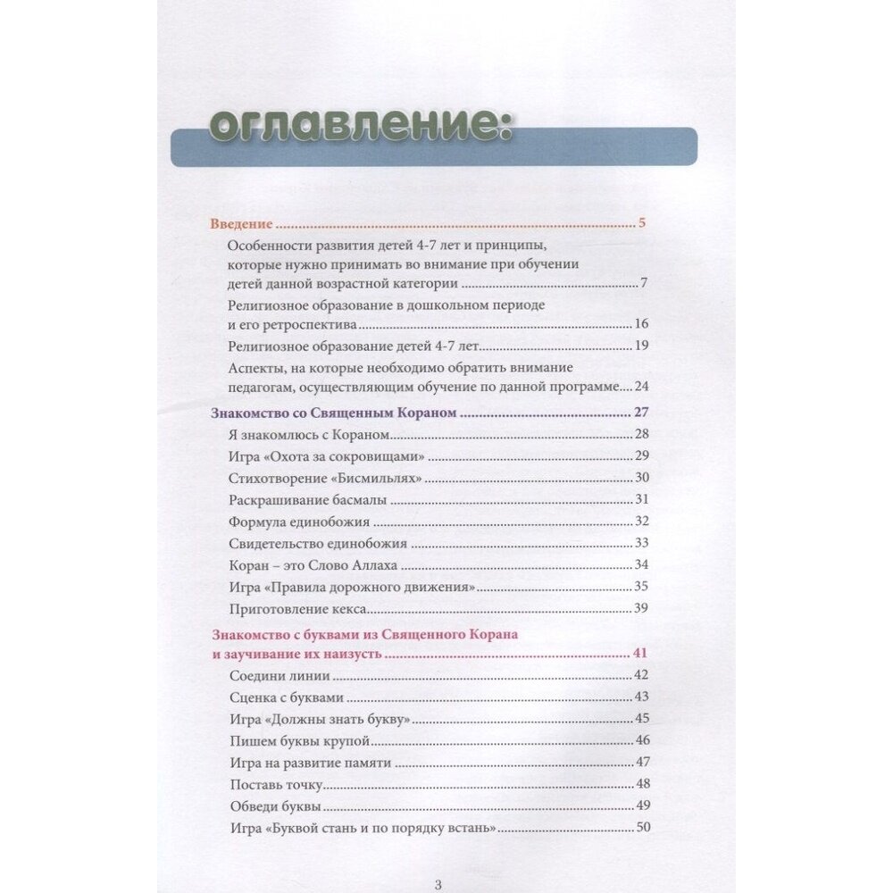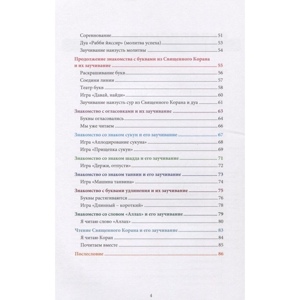 Данное издание, состоящее из "Книги воспитателя" и "Книги обучаемого", подготовлено Централизованной религиозной организацией "Духовное Управление мусульман города Москвы" для воспитателей и наставников младшей возрастной группы детей, посещающих занятия исламских религиозных курсов, медресе, а также применимо в условиях домашнего обучения. В качестве концептуальной основы пособия взят адаптированный перевод оригинальных турецких изданий "4-6 Yas Grubu Kuran Kurslan Ogretici Kitabi 1,2" и "4-6 Yas Grubu Kur'an Kurslari Etkinlik Kitabi 1,2".