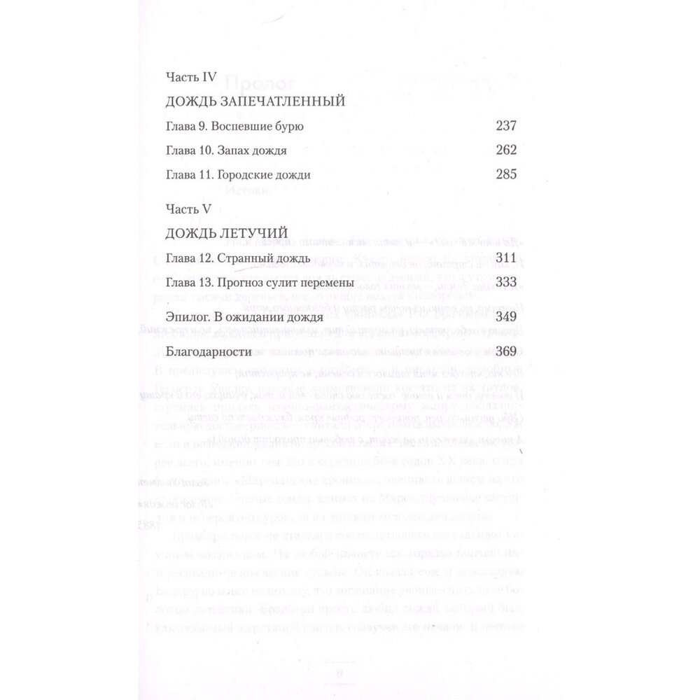 Для меня книга началась уже с очень романтичного оглавления. Оно чарует и завораживает, погружает в атмосферу. Наверное, такая книга будет интересна всем, кто любит дождь, кто в душе романтик или лирик:) Всё - о дожде. С разных сторон. Много истории. На самом деле, я представлял себе эту книгу немного иначе, но это не портит впечатление о ней. Это объёмный и важный труд. И это способно вдохновить!