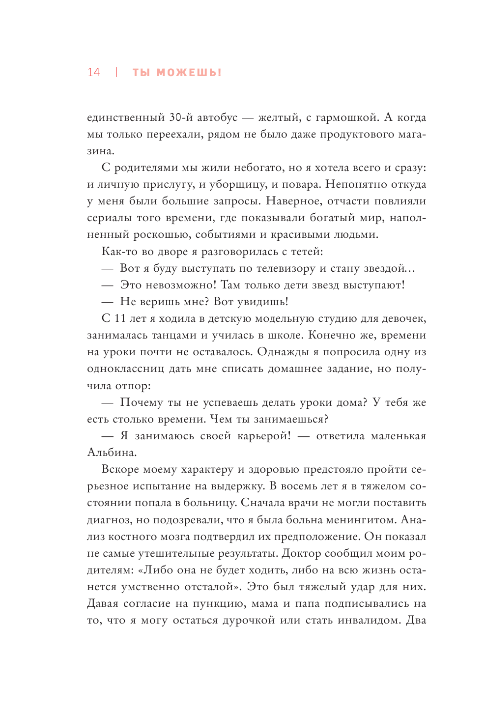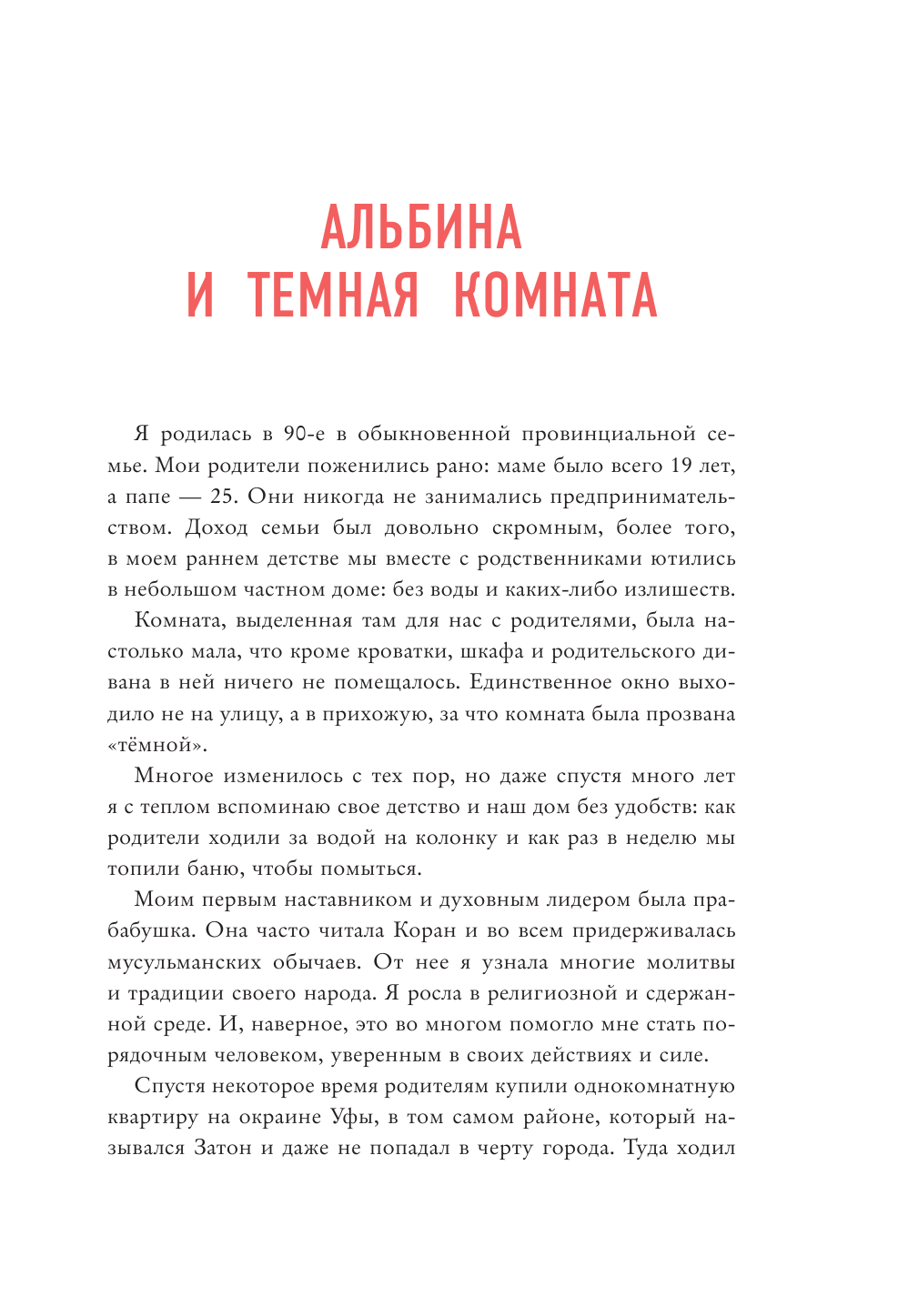 Альбина большая молодец. Человек который сделал сам себя. Я помню как она на бизнес встречах сидела в первых рядах. Всегда рвалась вперёд. И эта книга про жизнь девушки которая сама добилась всего. Советую почитать тем, у кого нет богатого папы и тем кто с 0 готов почти до самых высот.