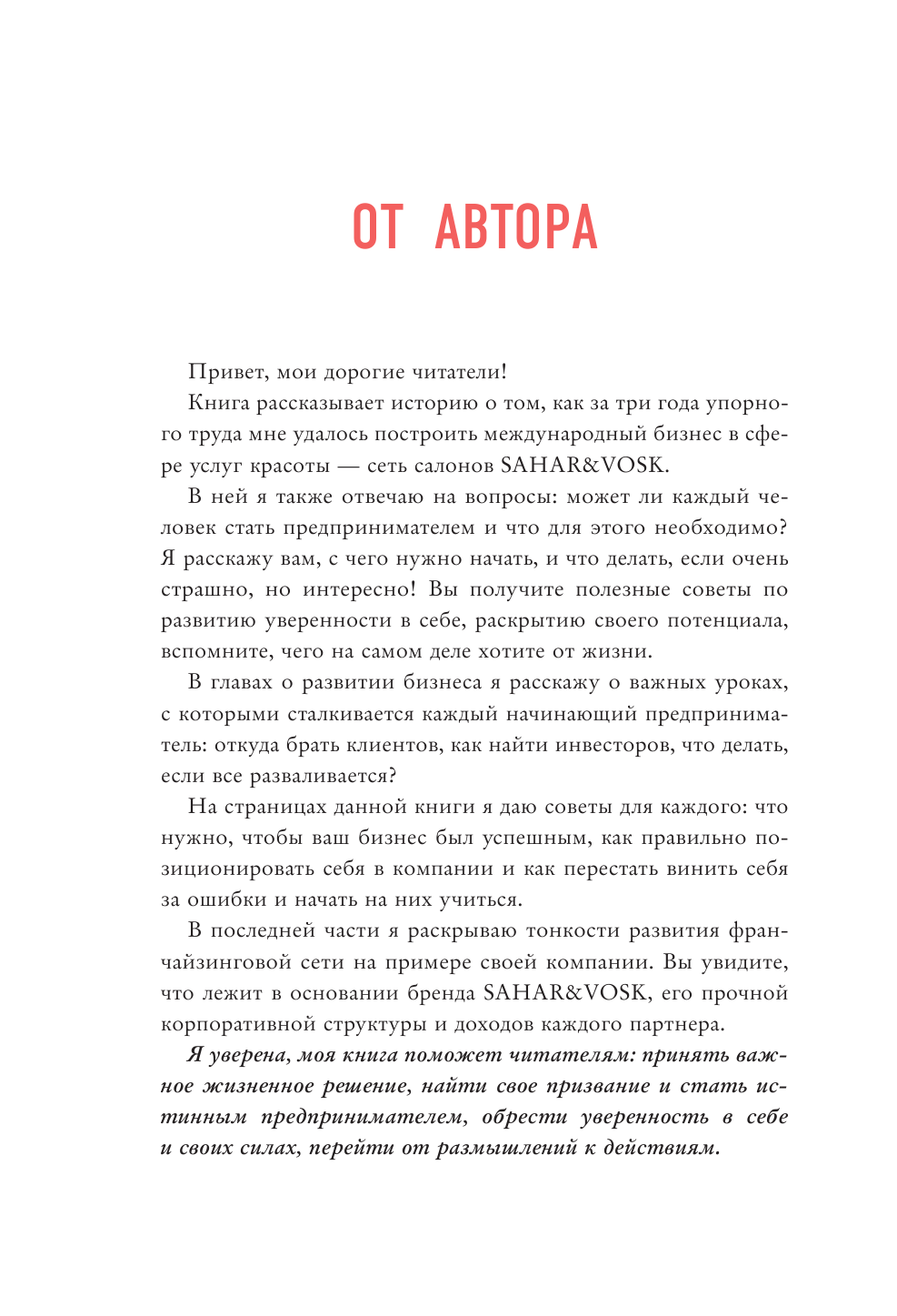 Это книга для тех, кто хочет построить свой бизнес, но не знает, с чего начать. Автор рассказывает, как всего за 3 года построила международный бизнес в сфере бьюти услуг.