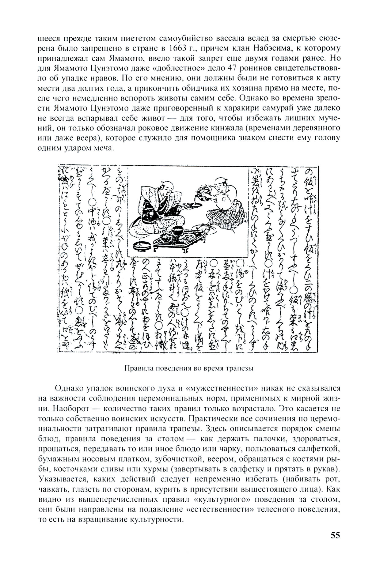 Это собственно «первый том» фундаментального исследования А. Н. Мещерякова о мировоззрении японцев и их культуре, это не раздельные вещи собственно. Данная книги фокусируется на эпохе Эдо (Токугава) и затрагивает в том числе эпоху Мэйдзи. Всё в мельчайших деталях рассматривается, даже уделяется внимание внезапному буму ношения бороды в эпоху Мэйдзи. Очень много говорится об этикете, о гигиене, о традициях.