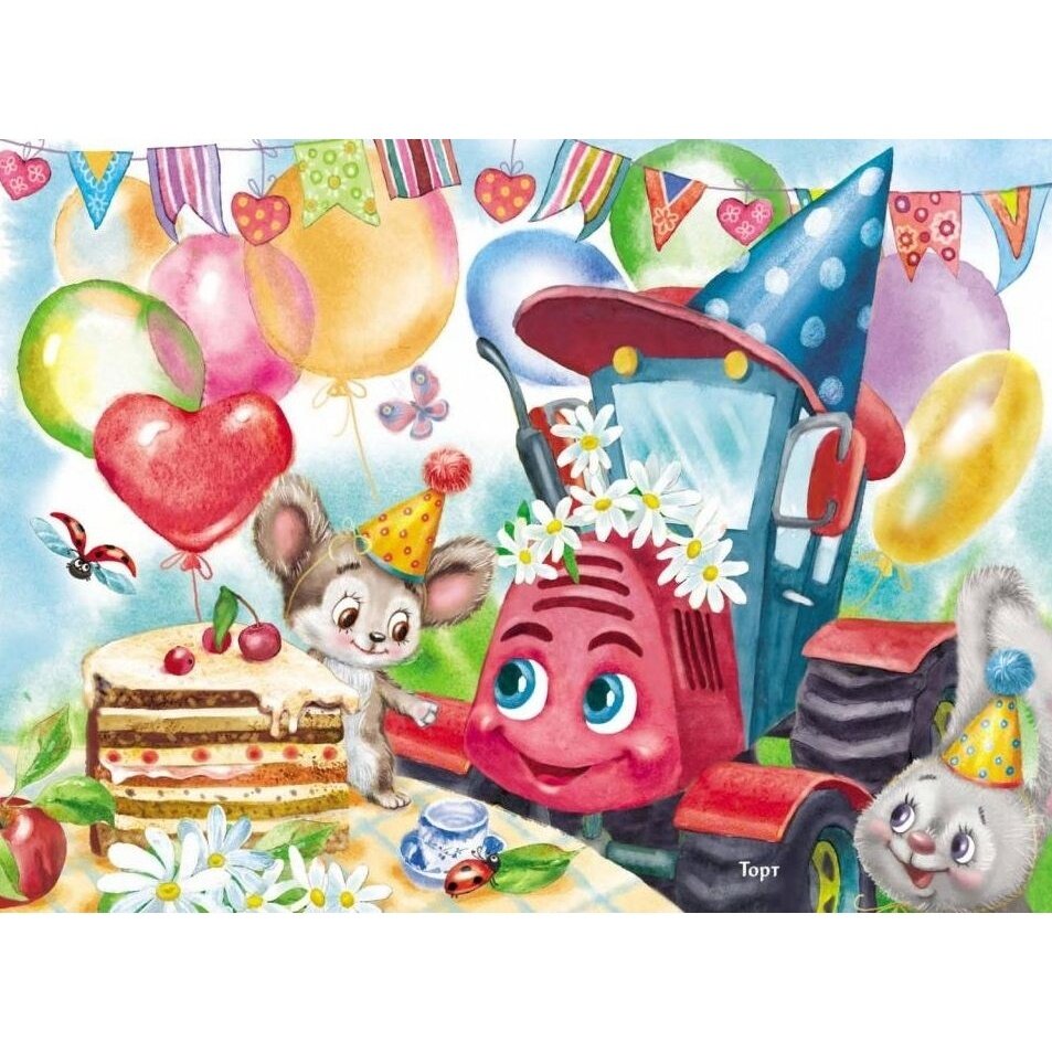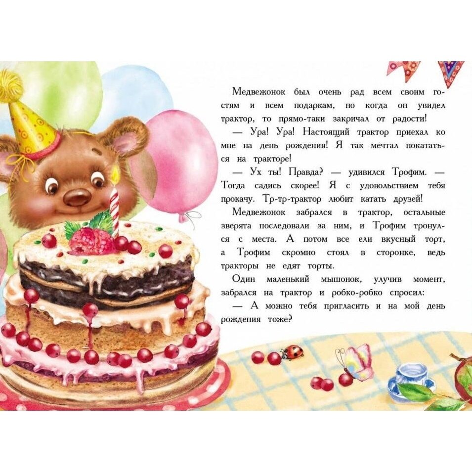 Трактор Трофим вместе со своими друзьями зайцами отправляется на день рождения к медвежонку. Но по дороге им то и дело встречаются зверята, которым необходима помощь Трофима. Успеют ли все гости приехать на день рождения вовремя? Какие подарки получит медвежонок?