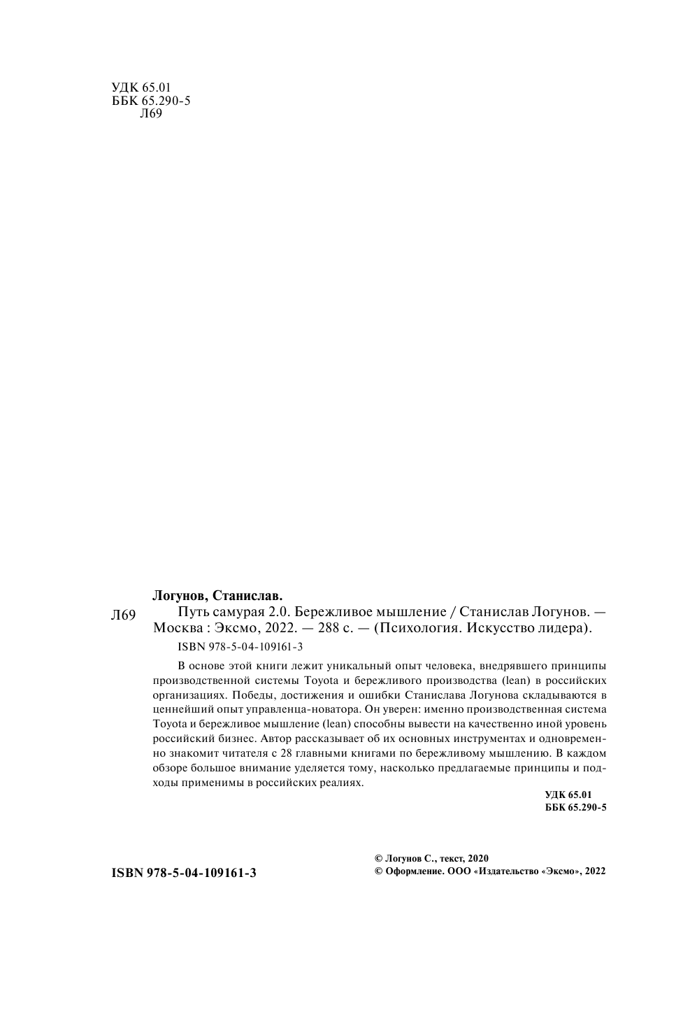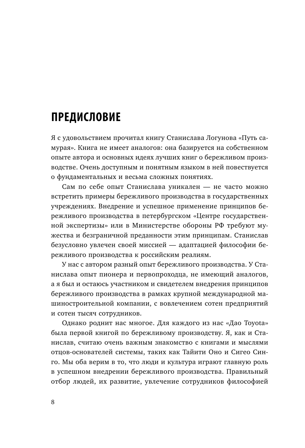 В основе этой книги лежит уникальный опыт человека, внедрявшего принципы производственной системы Toyota и бережливого производства (lean) в российских компаниях. Победы, достижения и ошибки Станислава Логунова складываются в ценнейший опыт управленца-новатора. Автор рассказывает об основных инструментах и одновременно знакомит читателя с 28 главными книгами по бережливому мышлению. В каждом обзоре большое внимание уделяется тому, насколько предлагаемые принципы и подходы применимы в российском бизнесе.