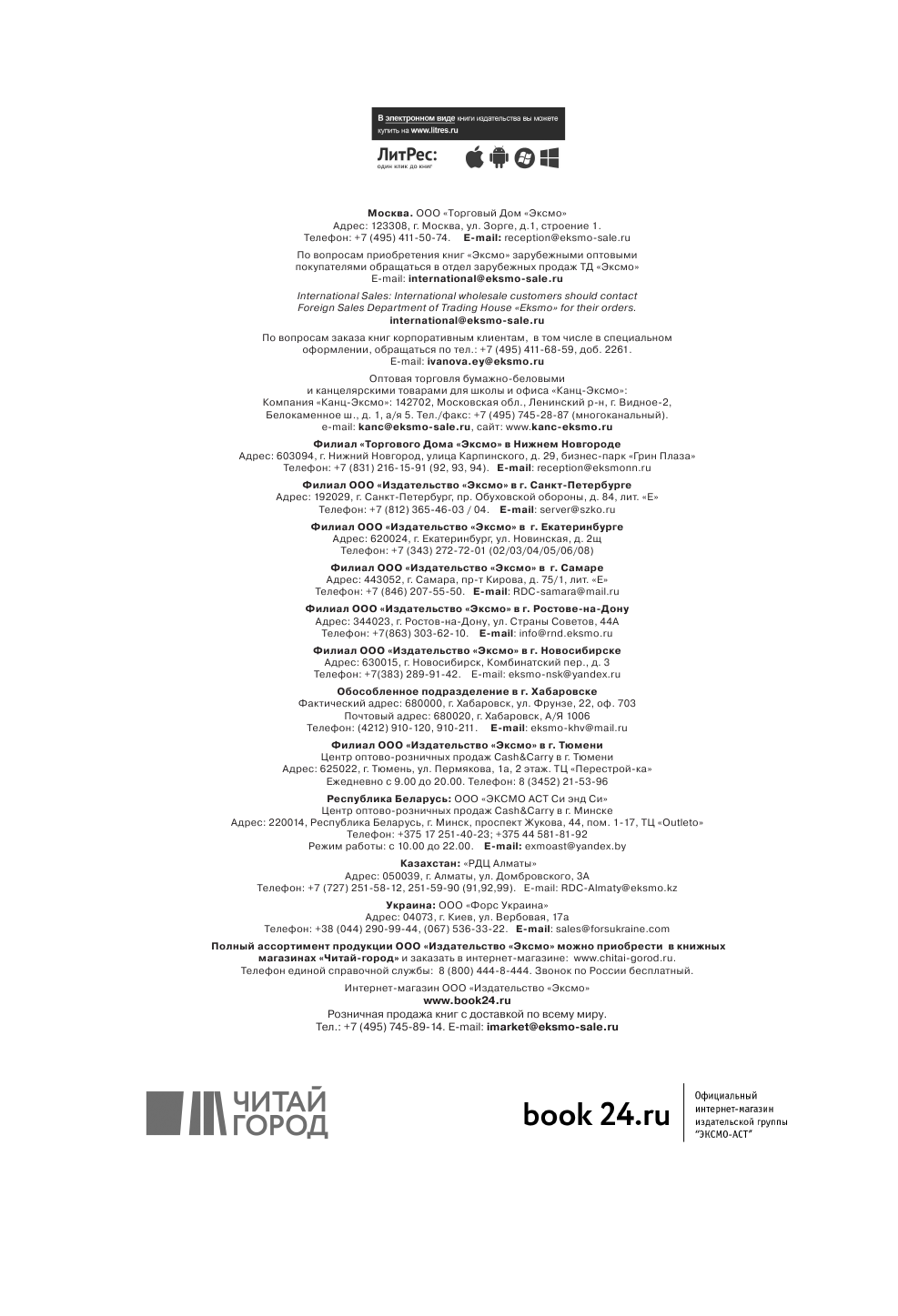 По данным нашего сервиса товар предлагался к продаже в 6 магазинах. На сегодняшний день доступен в 3 магазинах: Буквоед, book24, ЛитРес. По цене от 459 р. до 1199 р., средняя цена составляет 952 р., а самая низкая цена в магазине ЛитРес. В случае, если для вас на данный момент цена слишком высока, вы можете воспользоваться сервисом «Сообщить о снижении цены» - мы оповестим вас как только цена опустится до желаемого значения. Но будьте внимательны, используя сервис «История цены» можно спрогнозировать в какую сторону изменяется цена, возможно сейчас самое время для покупки.