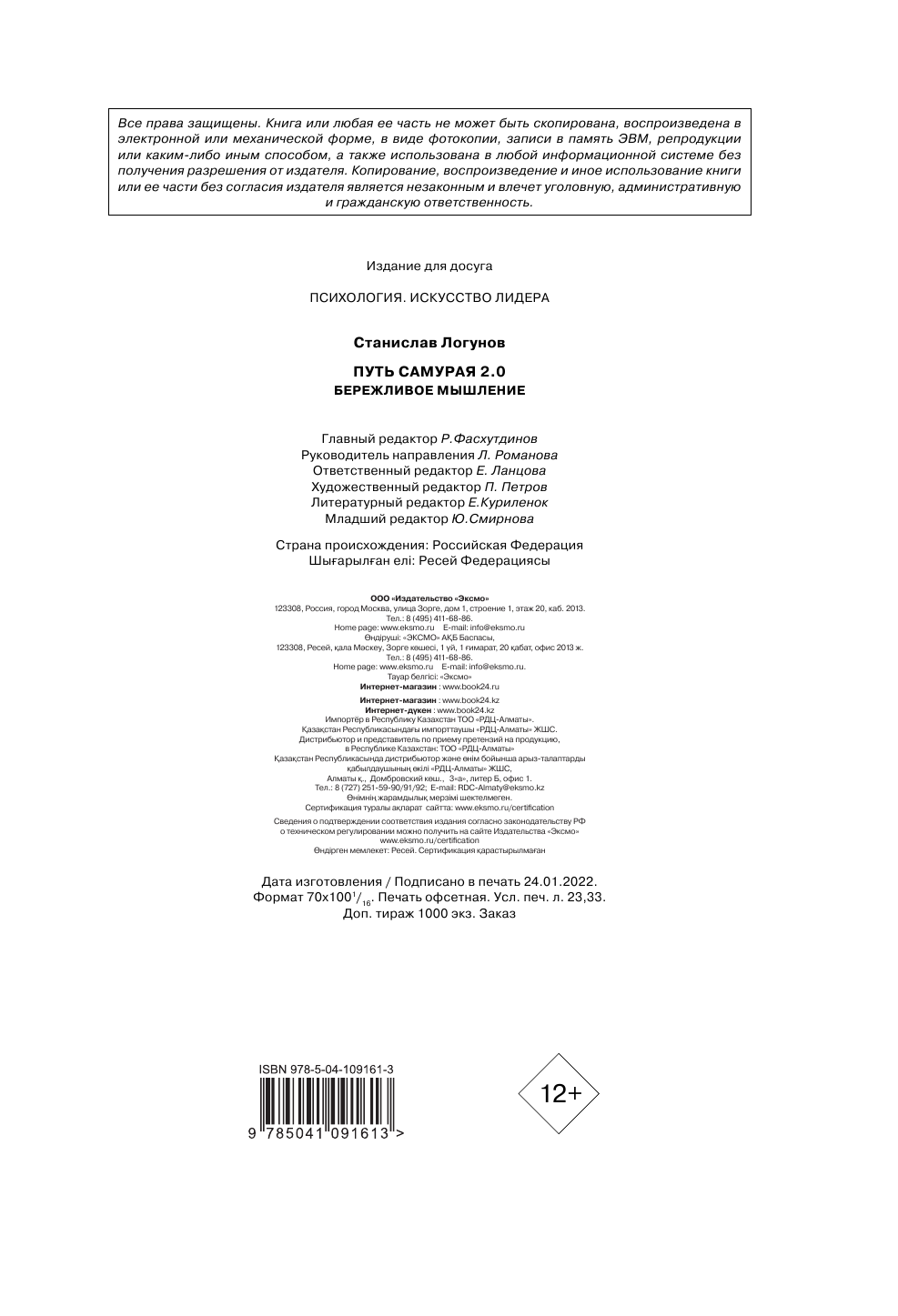 Путь самурая 2.0. Бережливое мышление (Станислав Логунов); Эксмо, 2020