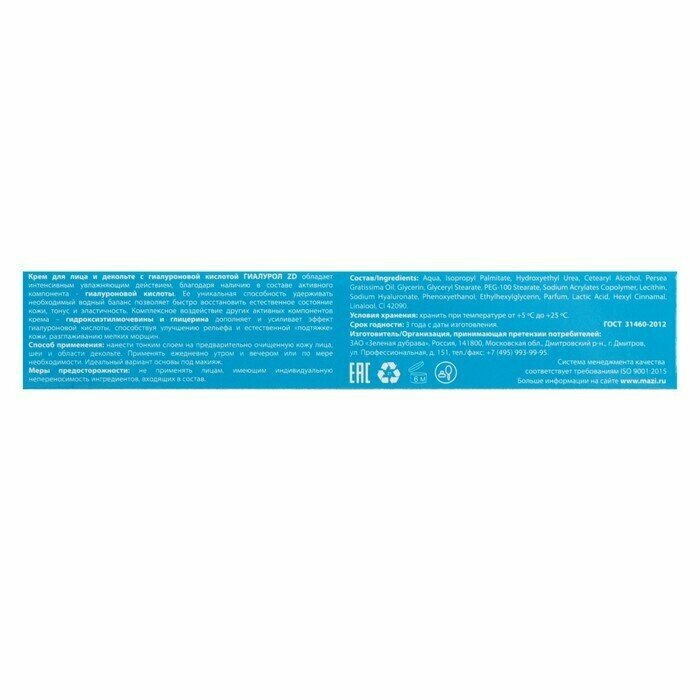 Гиалурол zd крем для лица и декольте туба 50мл ЗАО "Зеленая дубрава" (1093003)