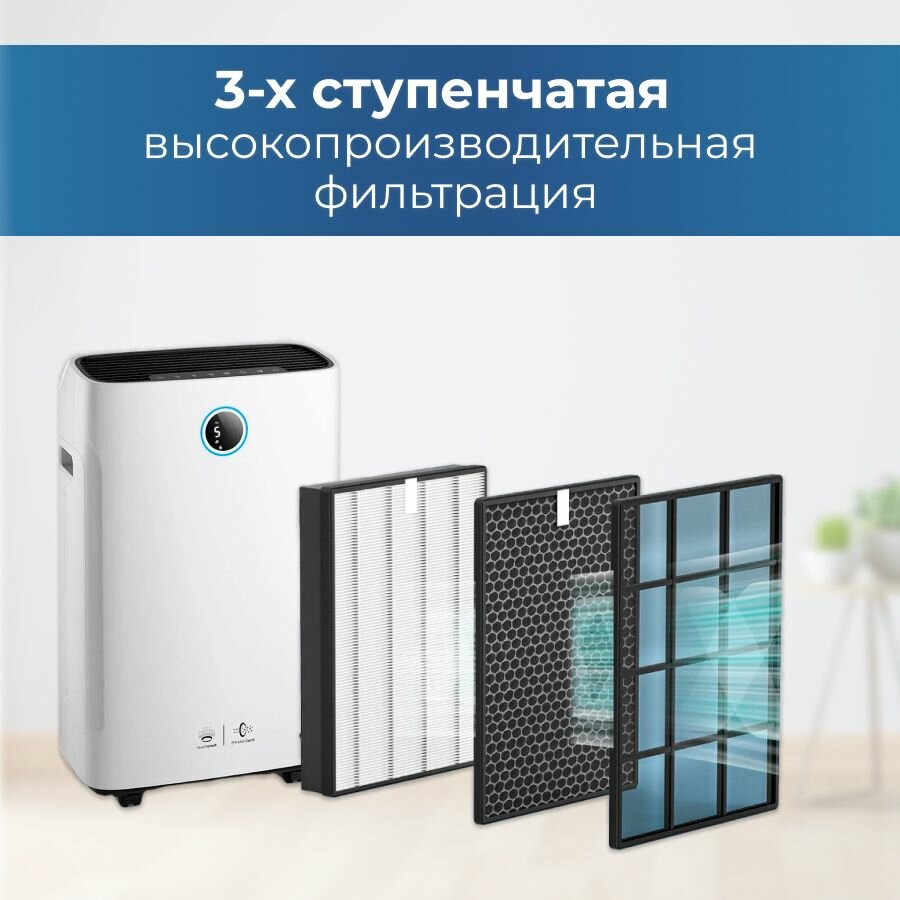 | Дополнительно | Ночной режим, Wi-Fi, Автоматическое поддержание уровня влажности в помещении, Отчеты о качестве воздуха (загрязненность, влажность), Дистанционное управление через мобильное приложение |