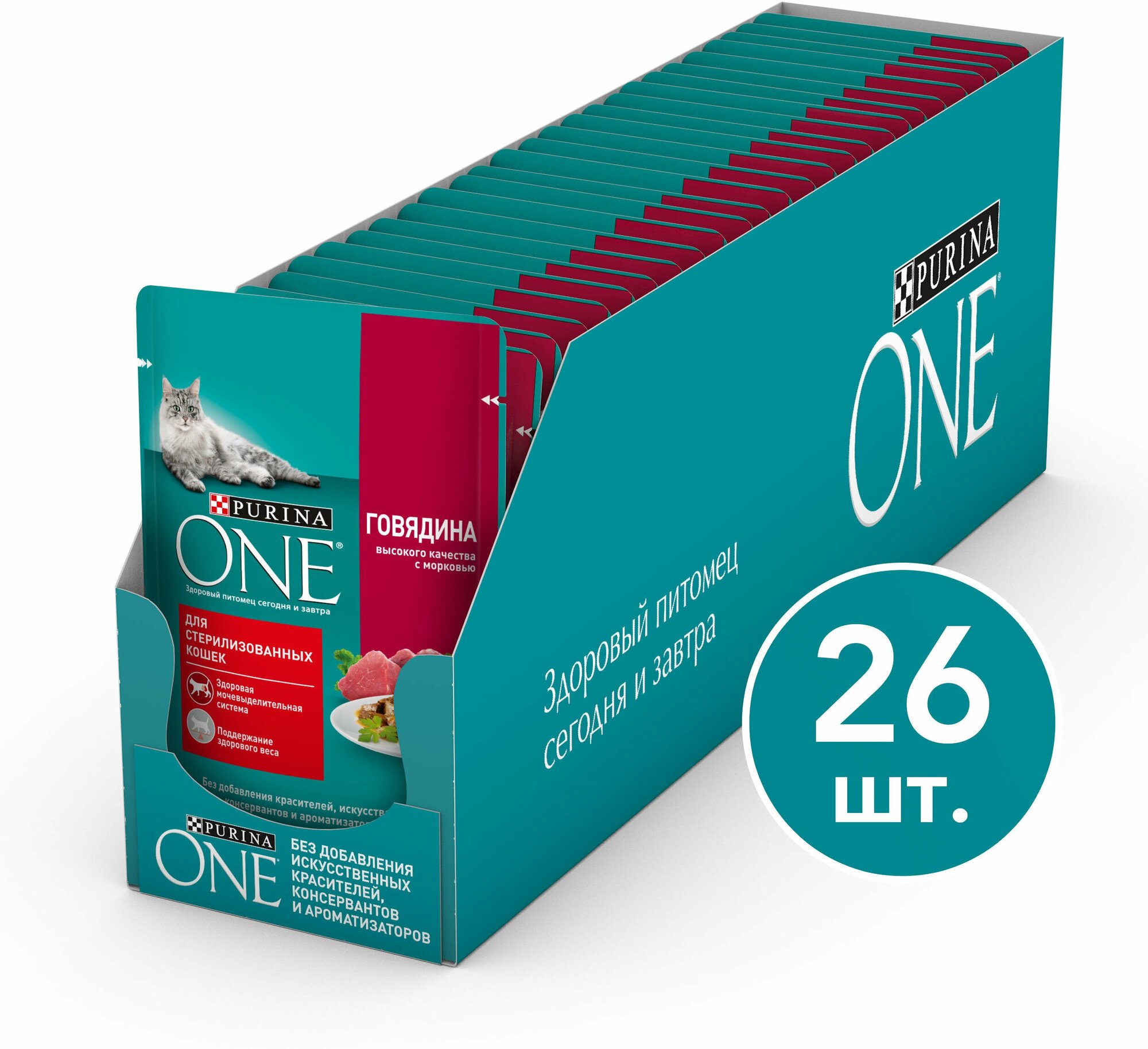 Описание товара:Консервированный полнорационный сбалансированный корм Purina One (Пурина Уан) специально разработан ветеринарными врачами и диетологами Нестле Пурина ПетКэр. Корм Purina One (Пурина Уан) — это сочетание отличного вкуса и гарантия пользы. Вы можете быть уверены, что с кормом Purina One (Пурина Уан) Ваша кошка получит питание высокого качества с отличным вкусом для поддержания ее здоровья.Состав товара:Мясо и мясные ингредиенты (включая говядину), экстракты растительного белка, рыба и продукты ее переработки, продукты переработки растительного сырья, аминокислоты, минеральные вещества, масла и жиры, овощи (морковь), сахара, загустители, витамины.Способ приготовления:Для взрослой кошки среднего веса (4 кг) требуется 3-4 пакетика в день. Кормление желательно разделить Минимум на два приема. Рекомендуемая суточная норма зависит от погодных условий, уровня активности кошки и ее физических особенностей. Подавайте корм комнатной температуры. Следите, чтобы у вашей кошки всегда была чистая свежая питьевая вода.Меры предосторожности:Упаковка не предназначена для игры. Для предотвращения риска удушения храните в недоступном для детей и животных месте. Хранить в сухом прохладном месте. После вскрытия хранить в холодильнике максимум 24 часа.