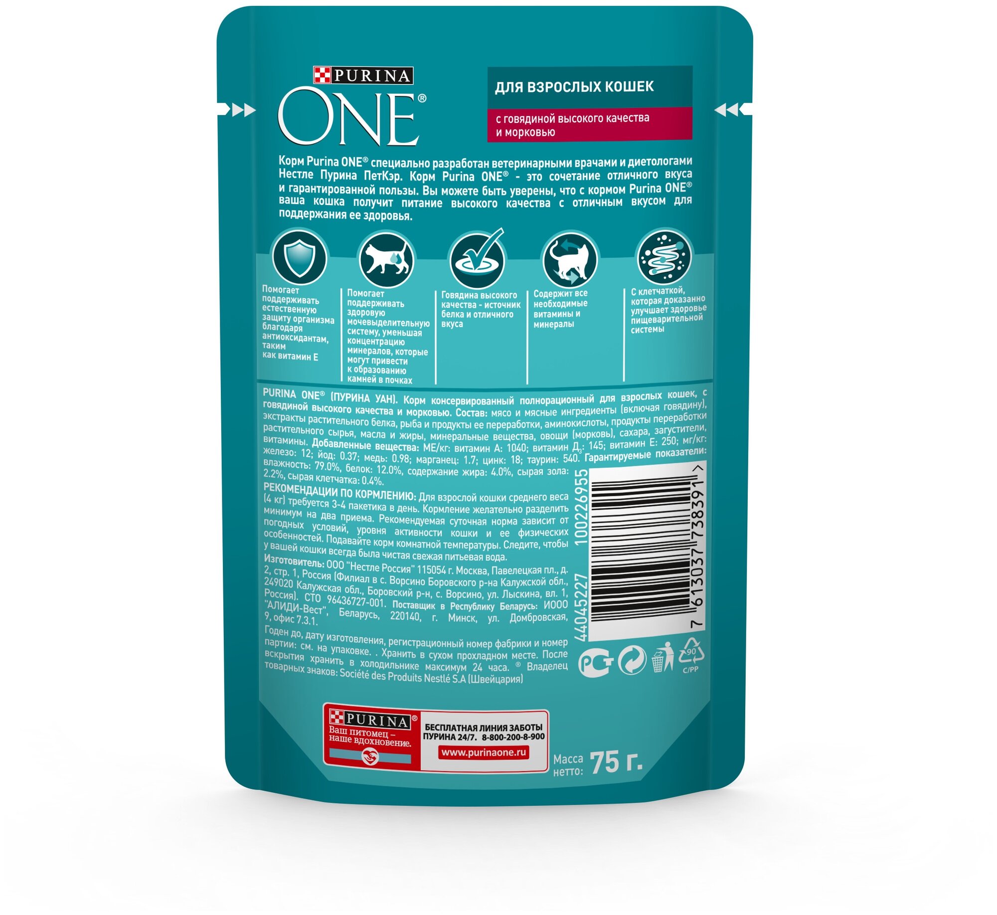 Корм для кошек Purina One говядина с морковью 75г Nestle