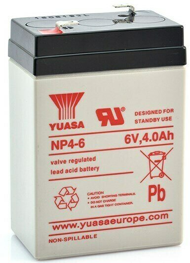 Yuasa NP4-6 6V/4Ah - батарея, используемая в источниках бесперебойного питания. Отличается высоким качеством исполнения, надежностью и увеличенным сроком службы. Требует проведения минимального технического обслуживания.