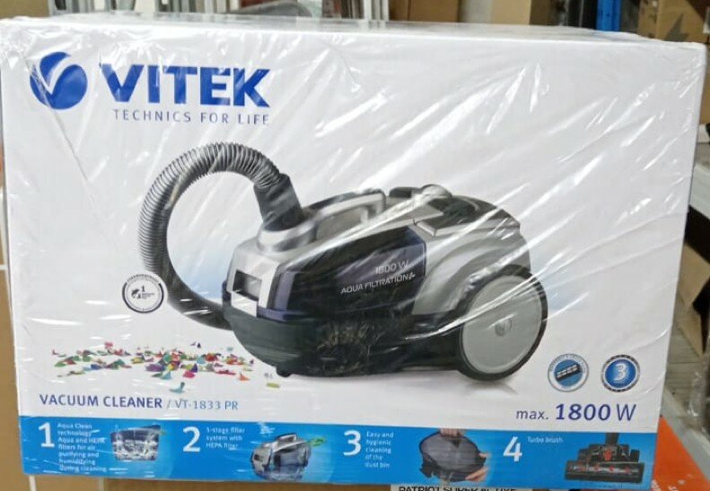 Покупая пылесос, вы стараетесь отдавать предпочтение наиболее мощным моделям? Тогда обязательно обратите внимание на пылесос с аквафильтром VITEK VT-1833. Мощность всасывания у этой модели очень высока – 400 ватт. Это значительно сокращает время, необходимое для наведения порядка в любой квартире. Пять ступеней фильтрации плюс фильтр тонкой очистки способны остановить всю пыль, исключая возможность попадания пыли в комнату.