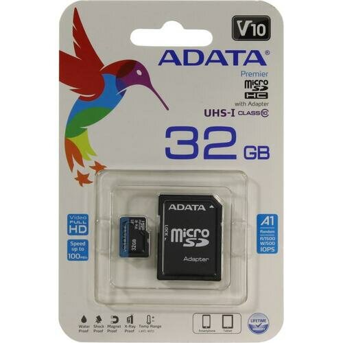 Карта памяти ADATA MicroSD XC 32 ГБ class 10 Карта памяти Micro Secure Digital 32 ГБ class 10 (с адаптером)