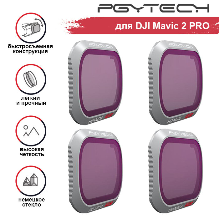 Набор фильтров для квадрокоптера Pgytech ND8 16 32 64 для DJI Mavic 2 Pro P-HAH-031