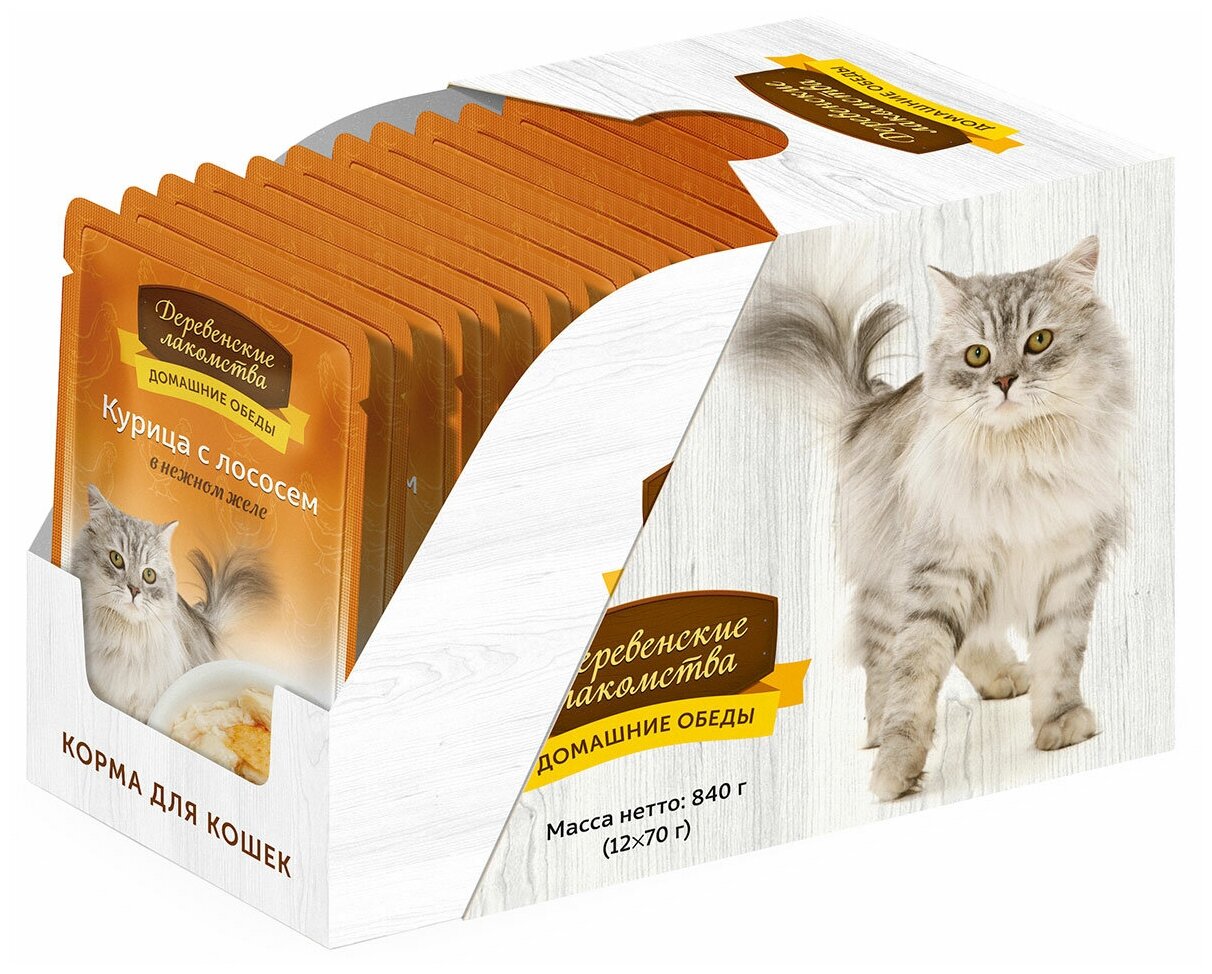 Влажный корм для кошек Деревенские Лакомства Курица с лососем в нежном желе 007 кг