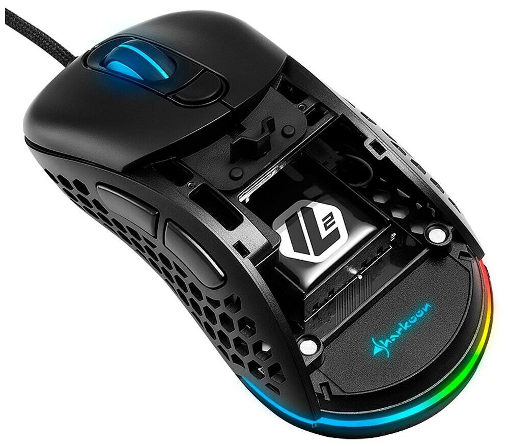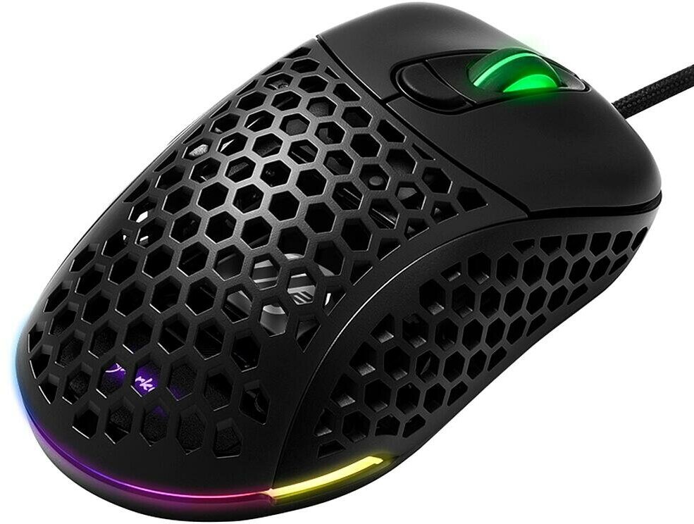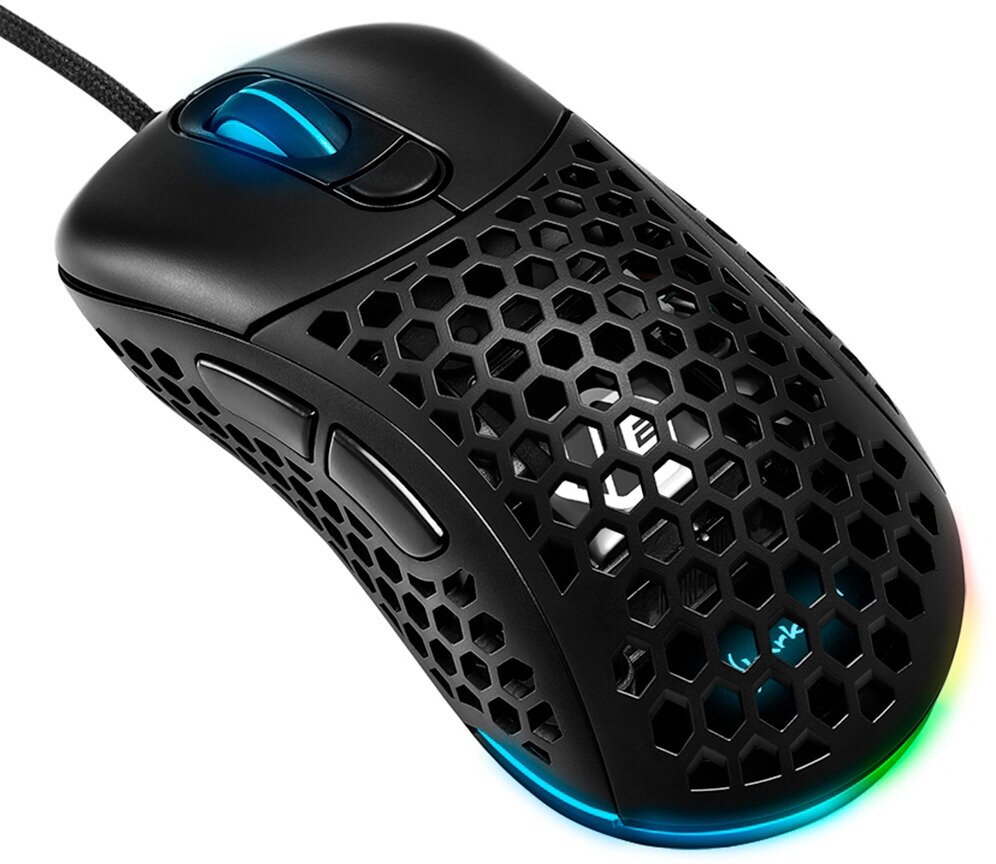 Мышь проводная Sharkoon Light2 200 - компьютерный манипулятор геймерского класса, который может похвастаться предельно малым весом, равным 62 г. Это обеспечивает самые быстрые и точные движения, что немаловажно при прохождении видеоигр любого жанра. Экстремальные свойства скольжения на любой поверхности гарантируют пять ножек из чистого ПТФЭ. Строгая черная расцветка корпуса гармонично дополняется настраиваемой RGB-подсветкой, в результате чего внешний вид этого грызуна может быть настроен под вкус любого пользователя. Проводной манипулятор Sharkoon Light2 200 получил высокоточный датчик PixArt PMW3389, чье максимальное разрешение достигает показателя 16 000 dpi. В конструкции модели присутствует шесть кнопок, включая программируемые кнопки на левом боку. 1.8-метровый кабель с интерфейсом USB на конце заключен в гибкую тканевую оплетку, за счет которой он меньше путается и медленнее перетирается об углы компьютерного стола. По форме своего корпуса мышь идеально подойдет для правой руки. За корпусом из пластика достаточно легко ухаживать, а его матовое покрытие препятствует его загрязненности отпечатками пальцев.