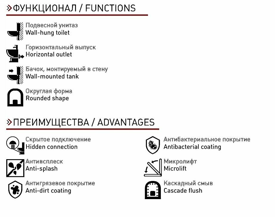В комплекте поставки: чаша унитаза, сиденье, монтажный набор.