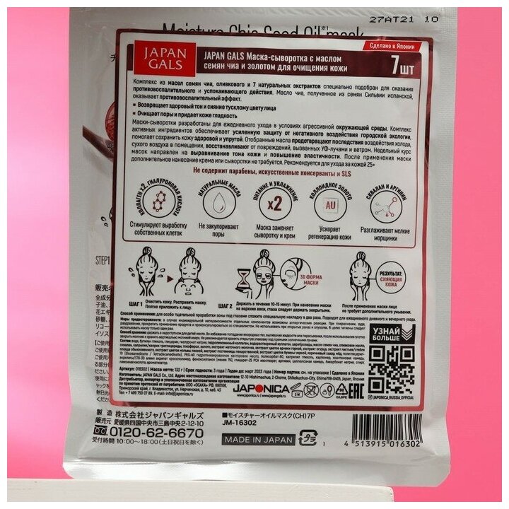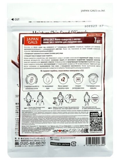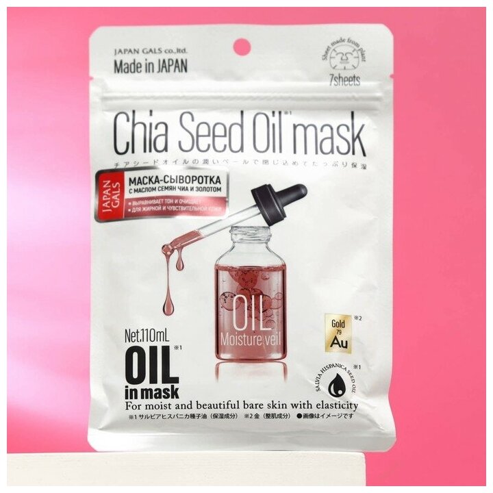 Japan Gals Маска-сыворотка с маслом чиа и золотом для очищения кожи 7 шт (Japan Gals ) (JG016302)