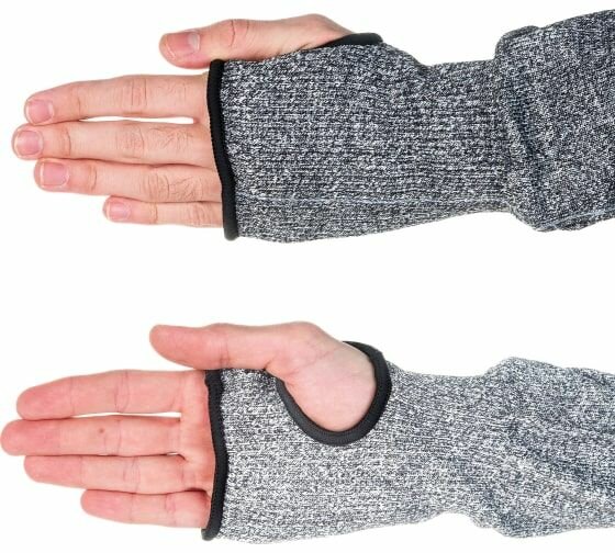 Нарукавники из синтетической пряжи (полиэтилен) выполнены с применением технологии бесшовной вязки, обеспечивающей повышенный комфорт при работе; имеет двойную застежку на липучке Velcro , для защиты рук от порезов (5 класс), размер единый ; EN388: 254X.Применяются в автомобилестроении, для работ по сборке крупной бытовой техники, для работы со стеклом, при металлообработке и штамповке;Изготовлены из материала HDPE (полиэтилен высокой плотности), который обеспечивает максимальную стойкость к порезам ;Цвет: серый; Длина 56см. Размер единый.