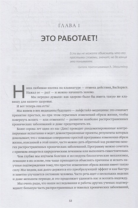 Доктор Дин Орниш - основатель и президент Исследовательского института профилактической медицины и клинический профессор медицины Калифорнийского университета в Сан-Франциско, а также Калифорнийского университета в Сан-Диего. Более сорока лет он проводит клинические исследования, впервые показав, что комплексные изменения образа жизни могут обратить вспять даже тяжелую ишемическую болезнь сердца без лекарств и операций. 42-й президент США Билл Клинтон назначил Орниша членом Комиссии Белого дома по политике в области комплементарной и альтернативной медицины, а 44-й президент США Барак Обама - членом Консультативной группы Белого дома по вопросам профилактики заболеваний, пропаганде здорового образа жизни и общественного здравоохранения.