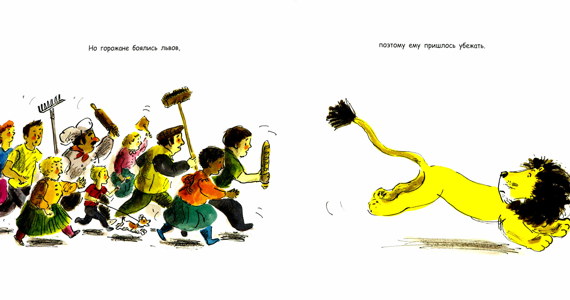 Первая книжка серии Как спрятать льва попала к нам немного не вовремя, в этакое "межвременье". Читать ее детям вслух - маловато текста и простоват сюжет, а читать самостоятельно еще рано, не тот уровень, не справятся - через 4-5 предложений дети уставали и теряли интерес. Поэтому я читала книгу вслух, сильно опасаясь детского разочарования с комментариями вроде "и все? уже закончилась?" Но сюжет, хоть и кратенько записанный, оказался состоящим из нескольких частей - сначала за появившимся в городе приличным воспитанным львом, собиравшимся купить себе шляпу, гонялись горожане, а он удирал. Пускай всего несколько предложений и пара разворотов, но ситуация вызывала интерес и сочувствие. Потом конспиративное проживание в доме спасшей льва девочки Айрис. Эта часть детям понравилась больше всего, вызвала множество улыбок и оживленных комментариев. Но затем опять напряженный момент - лев обнаружен! Он убегает. Дети опять сочувствуют несчастному животному, вынужденному прятаться. Но тут вступает в действие почти детективная часть сюжета, придавшая книжке остроты и особых симпатий. Лев становится свидетелем преступления и задерживает грабителей! И последняя часть - триумф, чествование героя и исполнение желания.