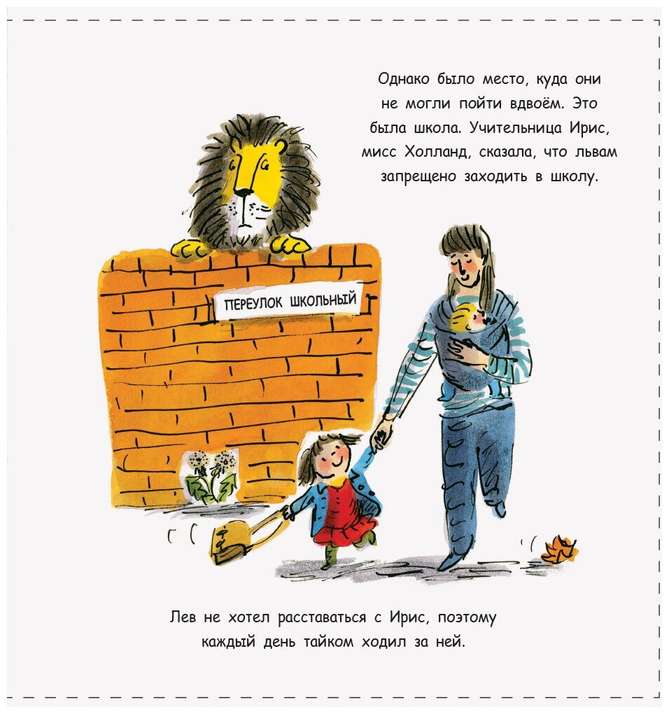 Учительница Ирис ни при каких условиях не позволяет девочке приходить в школу со львом. Но лев ни на минуту не хочет оставлять свою маленькую подругу. Противостояние учительницы и льва могло бы продолжаться долго, если бы не одна случайная поездка в музей.