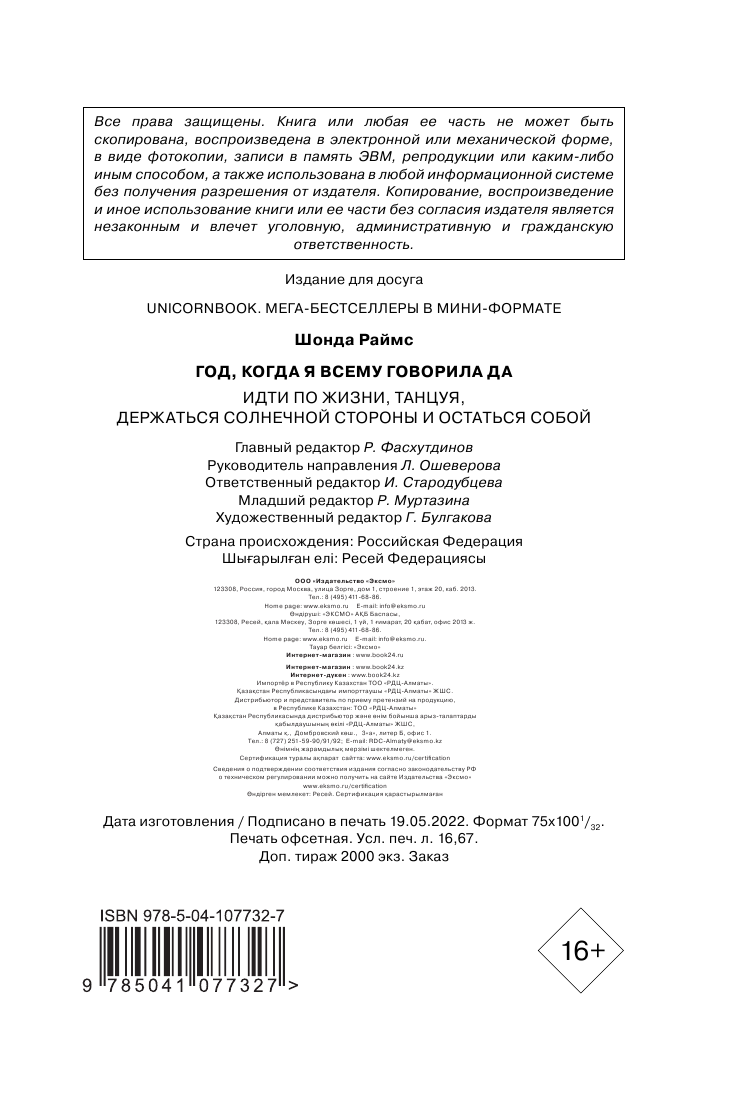 Эта книга - чистое вдохновение с огромным количеством юмора. Шонда Раймс проделала замечательную работу, рассказав о своем годе, в котором она говорила только “да”. Я провела потрясающее время, пока читала эту книгу. Я не хотела, чтобы она заканчивалась! Очень советую к покупке.