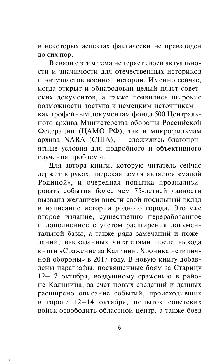 Сражение за Калинин и этим многое сказано! Книга написана исторически интересно, захватывающе и научно. Книга содержит уникальные иллюстрации в виде карт, фотографии и т.д. Книга включает в себя исторические факты и ответы на многие вопросы, относящиеся к тому тяжелому времени. Книга оформлена достойно и качественно. Очень рада, что приобрела данную книгу, а также рекомендую ее и другим читателям.