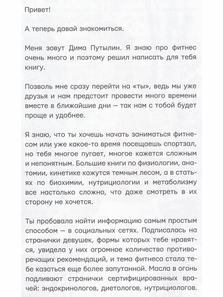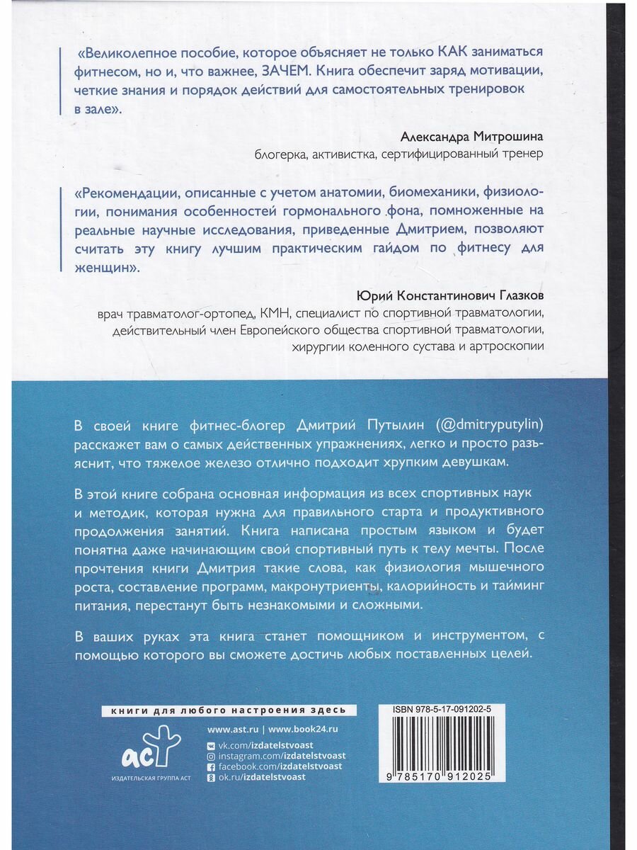 "В своей книги фитнес-блогер Дмитрий Путылин (@dmitryputylin) расскажет вам о самых действенных упражнениях, легко и просто разъяснит, что тяжелое железо отлично подходит хрупким девушкам.