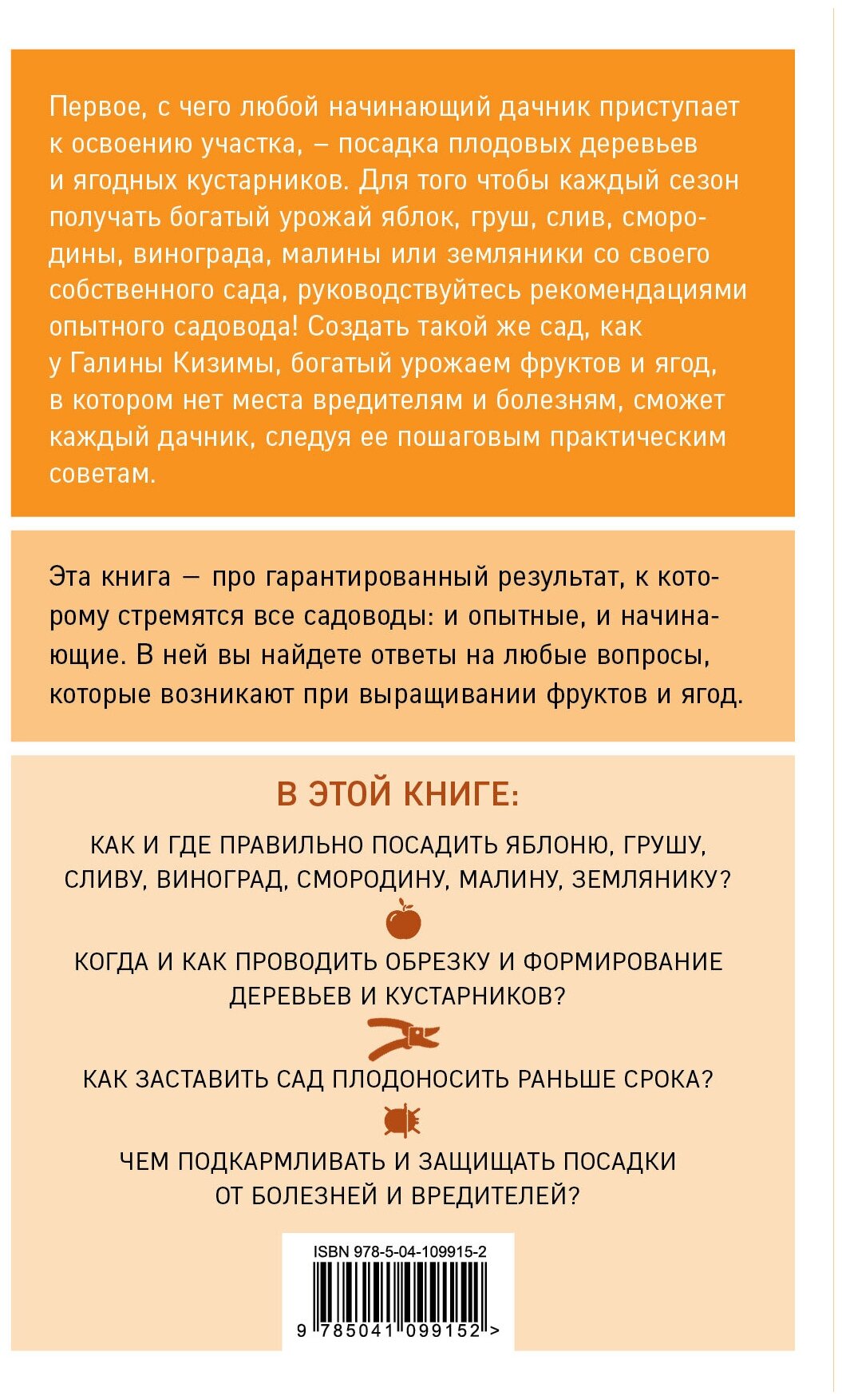 Садоводам, мечтающим сэкономить свои средства и силы при работе на участке, будет интересно познакомиться с разумным подходом известного автора и садовода с 50-летним стажем Галины Кизимы. Сто главных советов от автора по выбору сортов основных плодовых культур, посадке, обрезке, формировке и уходу за садовыми деревьями и ягодными кустарниками помогут избежать основных проблем и получить здоровый и богатый урожай без лишних усилий.