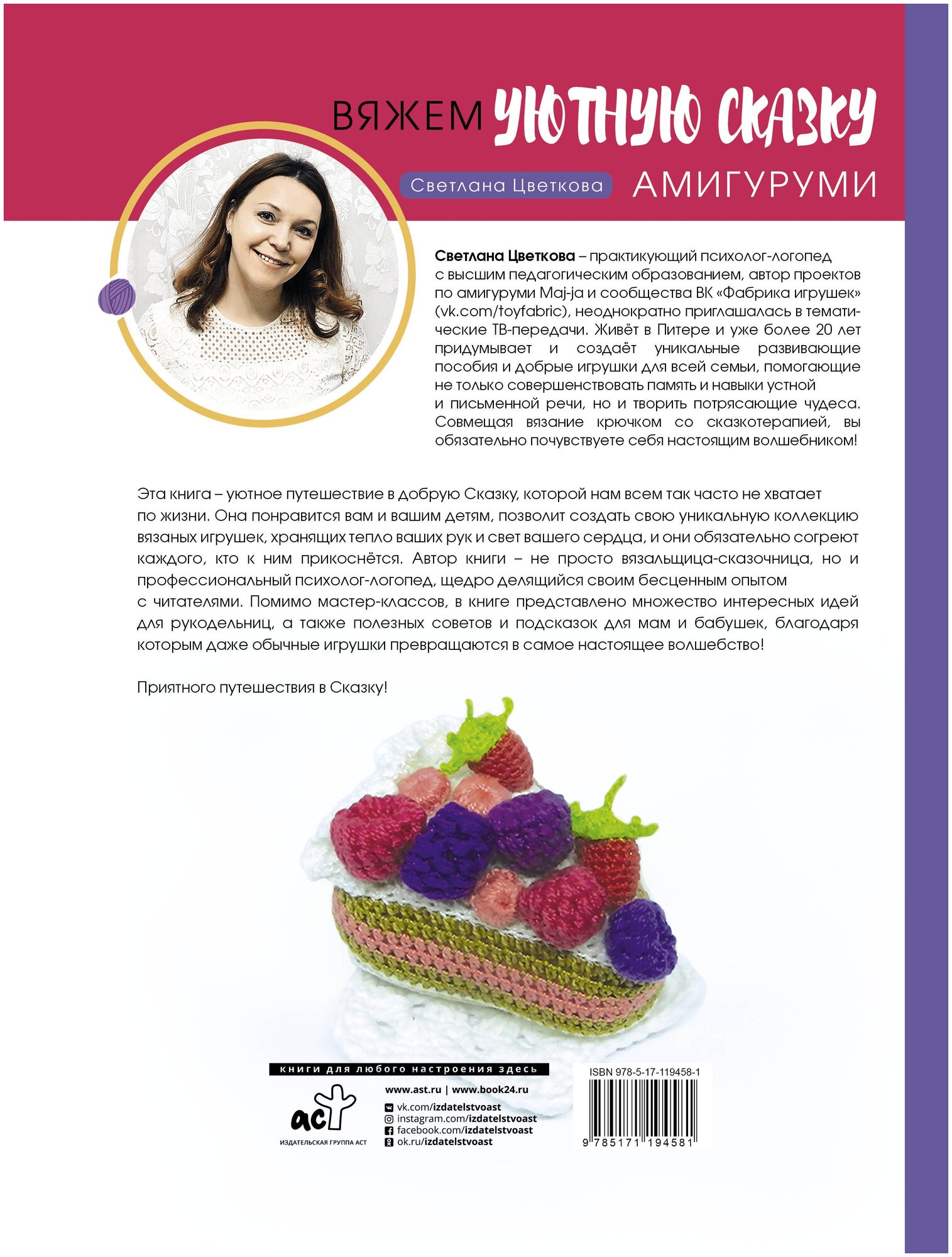 Эта книга - уютное путешествие в добрую Сказку, которой нам всем так часто не хватает по жизни. Она понравится вам и вашим детям, позволит создать свою уникальную коллекцию вязаных игрушек, хранящих тепло ваших рук и свет вашего сердца, и они обязательно согреют каждого, кто к ним прикоснётся. Автор книги - не просто вязальщица-сказочница, но и профессиональный психолог-логопед, щедро делящийся своим бесценным опытом с читателями. Помимо мастер-классов, в книге представлено множество интересных идей для рукодельниц, а также полезных советов и подсказок для мам и бабушек, благодаря которым даже обычные игрушки превращаются в самое настоящее волшебство! Приятного путешествия в Сказку!