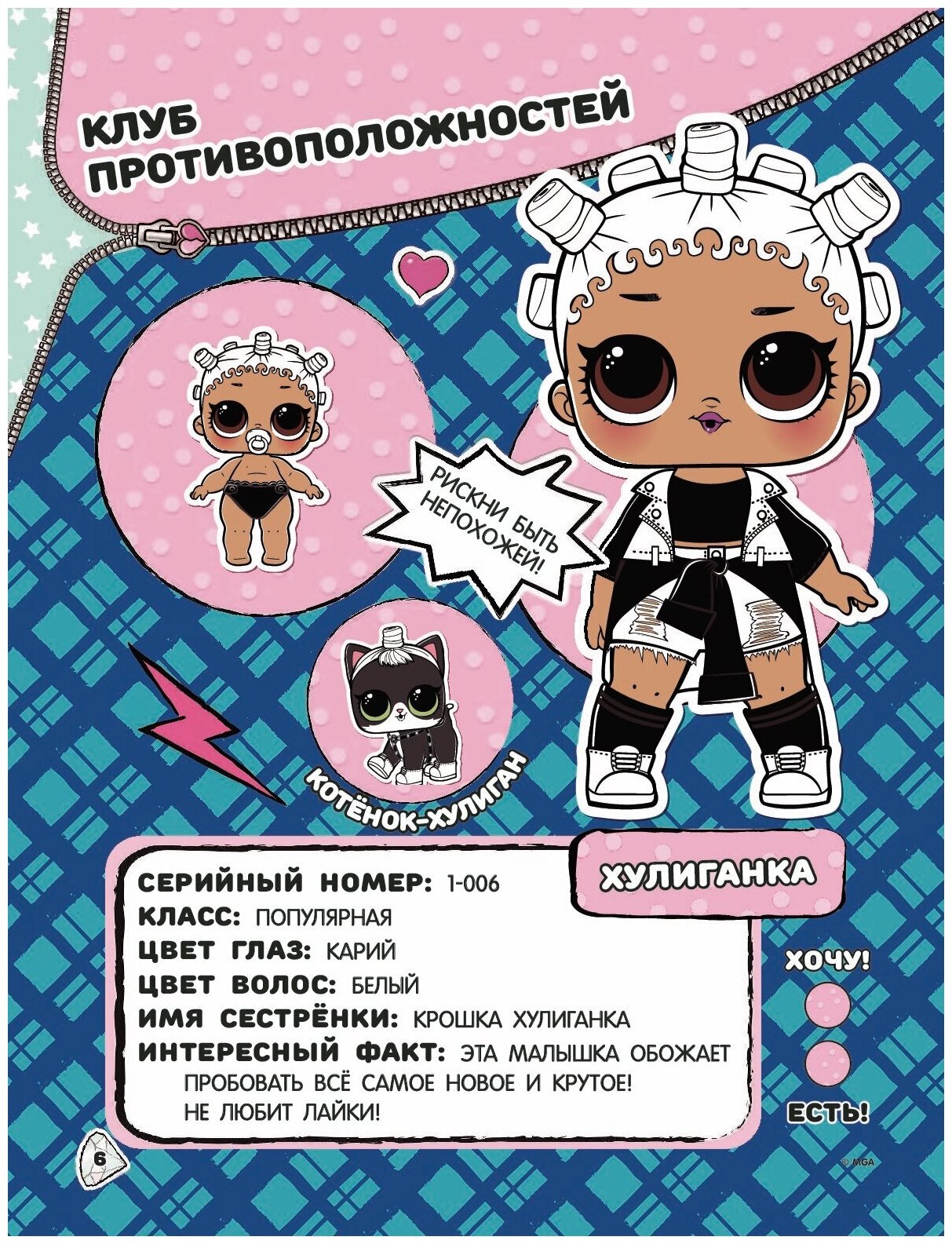 На страницах этой книги ты найдёшь огромное количество очаровательных куколок L.O.L., их сестричек и питомцев. Сможешь отметить тех милашек, которые у тебя уже есть, и тех, кого бы ты хотела заполучить в свою коллекцию. У каждой куклы есть досье, из которого ты узнаешь много интересного!