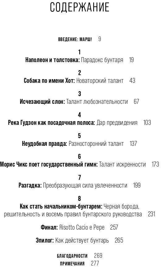 Книга не содержит кейсов или советов, которые могли бы помочь стать "бунтарем". Автор на примере людей из разных точек мира анализирует бунтарство как качественно иной подход к жизни. После прочтения приходит уверенность в том, что каждый (в том числе и ты сам) способен изменить мир, главное - изменить отношение к нему и устоявшимся порядкам.