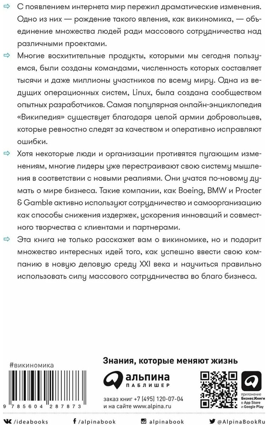 Викиномика: Как массовое сотрудничество изменяет все (Дон Тапскотт, Энтони Д. Уильямс); Альпина Паблишер, 2020