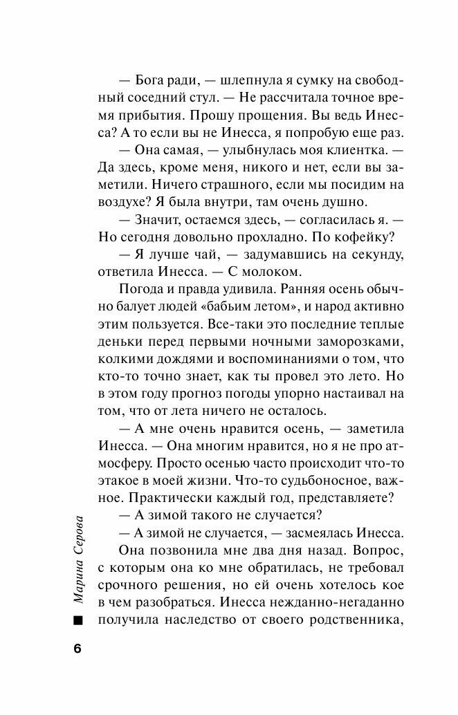 Частного детектива Татьяну Иванову нанимает Инесса Локтева, недавно получившая в наследство от своего дяди квартиру в Москве. Дядю она почти не знала, о том, как он жил и чем занимался, представления не имеет, поэтому опасается, что с наследством могут возникнуть сложности. Перед самым отъездом в Москву становится понятно, что проблемы обязательно будут, потому что за Инессой следит подозрительный мужчина...