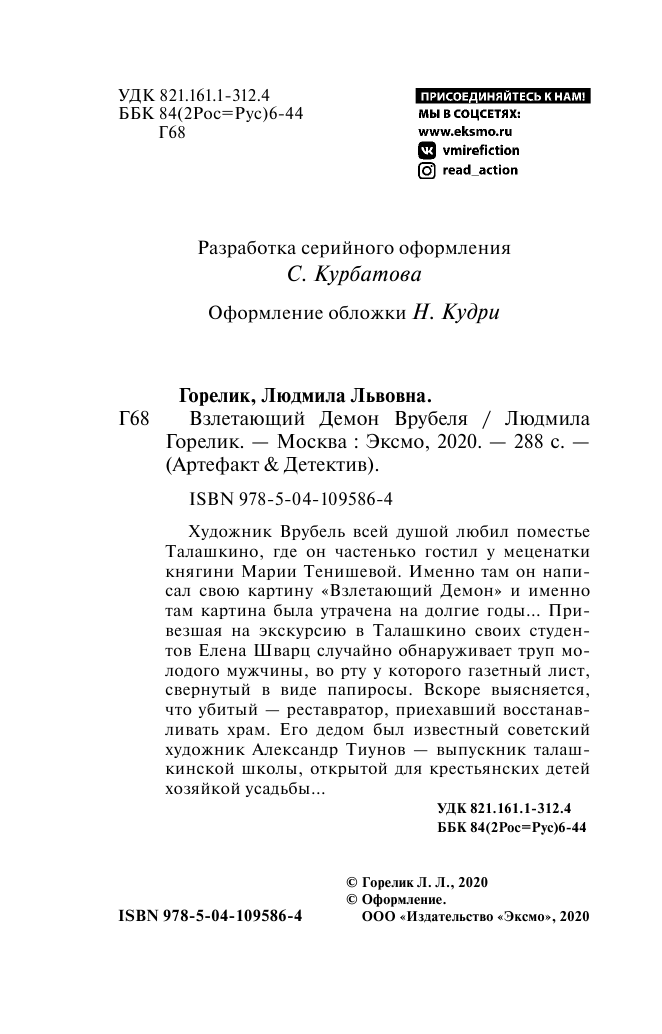 Книга: Взлетающий Демон Врубеля (Людмила Львовна Горелик); Эксмо, 2020