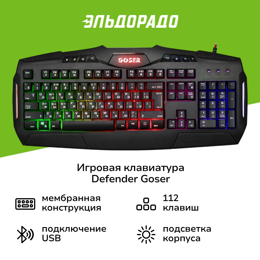 На сегодняшний день товар «Игровая клавиатура Defender Goser GK-772L (45772)» можно купить с кешбеком в 2 магазинах: М.Видео, Эльдорадо