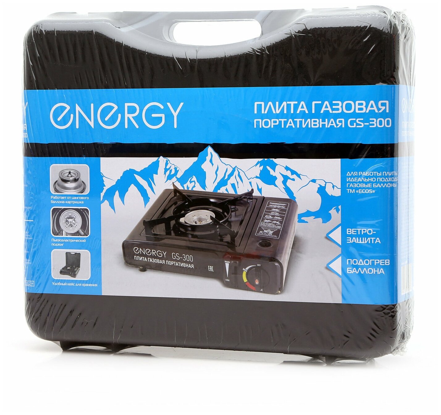 Конструкция плиты выполнена из высококачественных материалов, что делает плиту надежной и долговечной. Также для того, чтобы разжечь плиту Вам не нужно будет носить с собой спички или другие разжигательные элементы. Для безопасного розжига плиты установлен пьезоподжиг. Также для надежной безопасности в плите Energy GS-300 установлена защита от утечки и протечки газа, которая контролирует процесс подачи газа. Защита от неправильной установки баллона не позволит использовать баллон, который неправильно подключен. Все эти показатели делают плиту Energy GS-300 незаменимой вещью при приготовлении или разогреве пищи на отдыхе на даче, пикнике, на рыбалке.