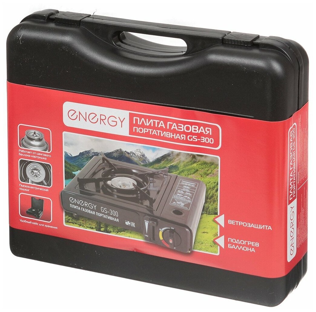 Газовая портативная плита Energy GS-300 благодаря удобной конструкции позволяет использовать данную модель в различных путешествиях или на даче. Модель крайне удобна при транспортировке. Работает портативная плита от газового баллона 220 грамм, который вставляется внутрь плиты.