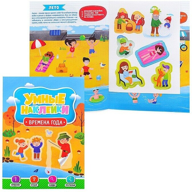 • С серией «Умные наклейки» малыш с пользой проведёт время! Полезная информация о временах года расширит кругозор, интересные задания помогут стать внимательнее, а наклейки развеселят юного исследователя. • Обучение в игровой форме — что может быть лучше?• Формат: 195х276 мм.• Кол. страниц: 8.• Тип обложки: скреп.• Материалы: картон целл, бум. мелов, бум. самокл.• Соответствует требованиям безопасности продукции.• Возраст: 0+.